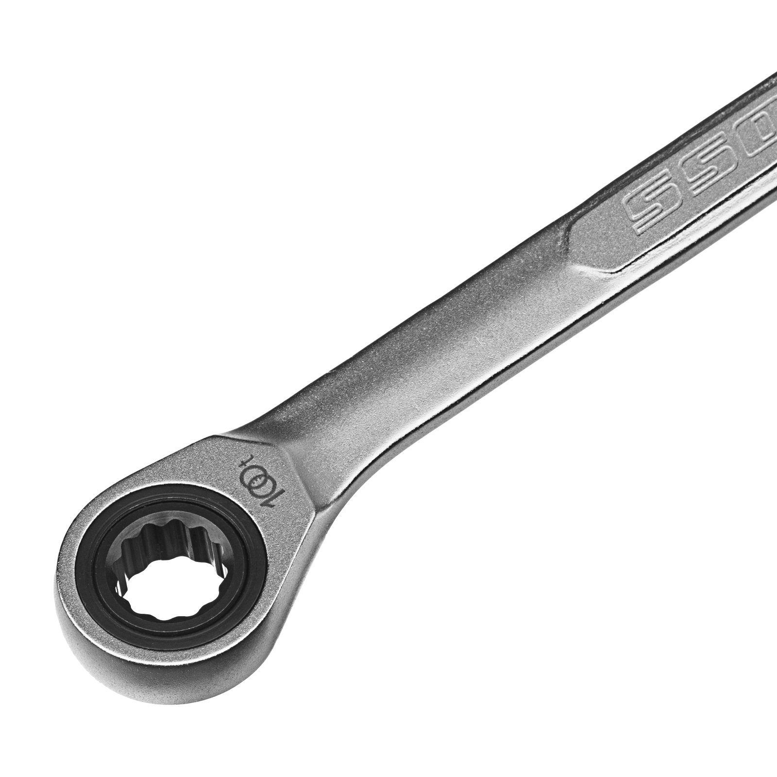 - Храповый механизм оснащен 100 зубцами, что обеспечивает плавность хода инструмента (шаг трещотки всего 3,6 градусов) и делает его удобным для работы в ограниченном пространстве.