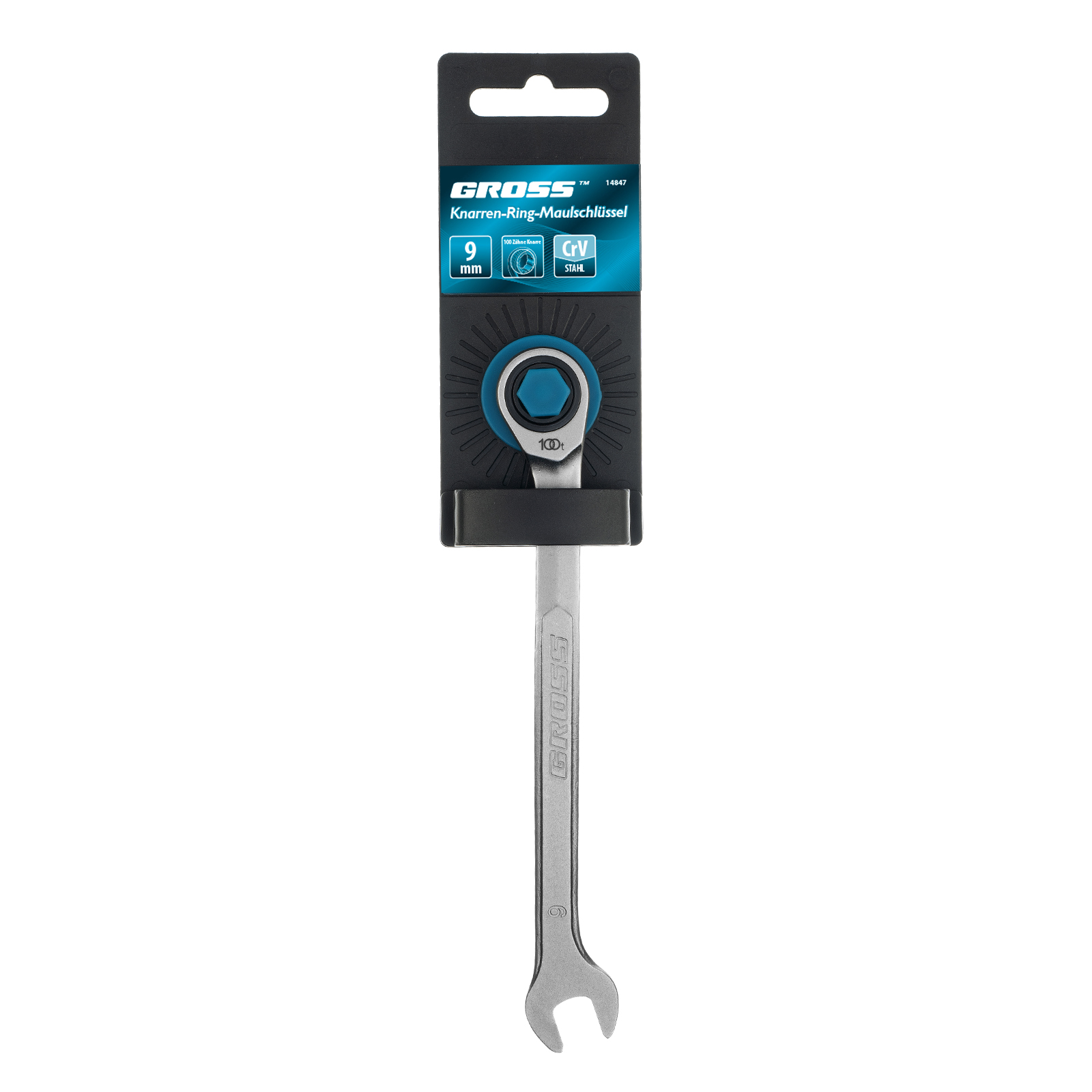 Комбинированный трещоточный ключ Gross 14847, 9 мм, используется при монтаже и демонтаже резьбовых соединений. Инструмент имеет как рожковую, так и накидную часть, что повышает его функциональность. У накидной части 12 внутренних граней, что увеличивает площадь соприкосновения с головкой крепежа и снижает риск ее деформации. Ключ применяется как в автосервисах, так и для самостоятельного ремонта автомобилей.
