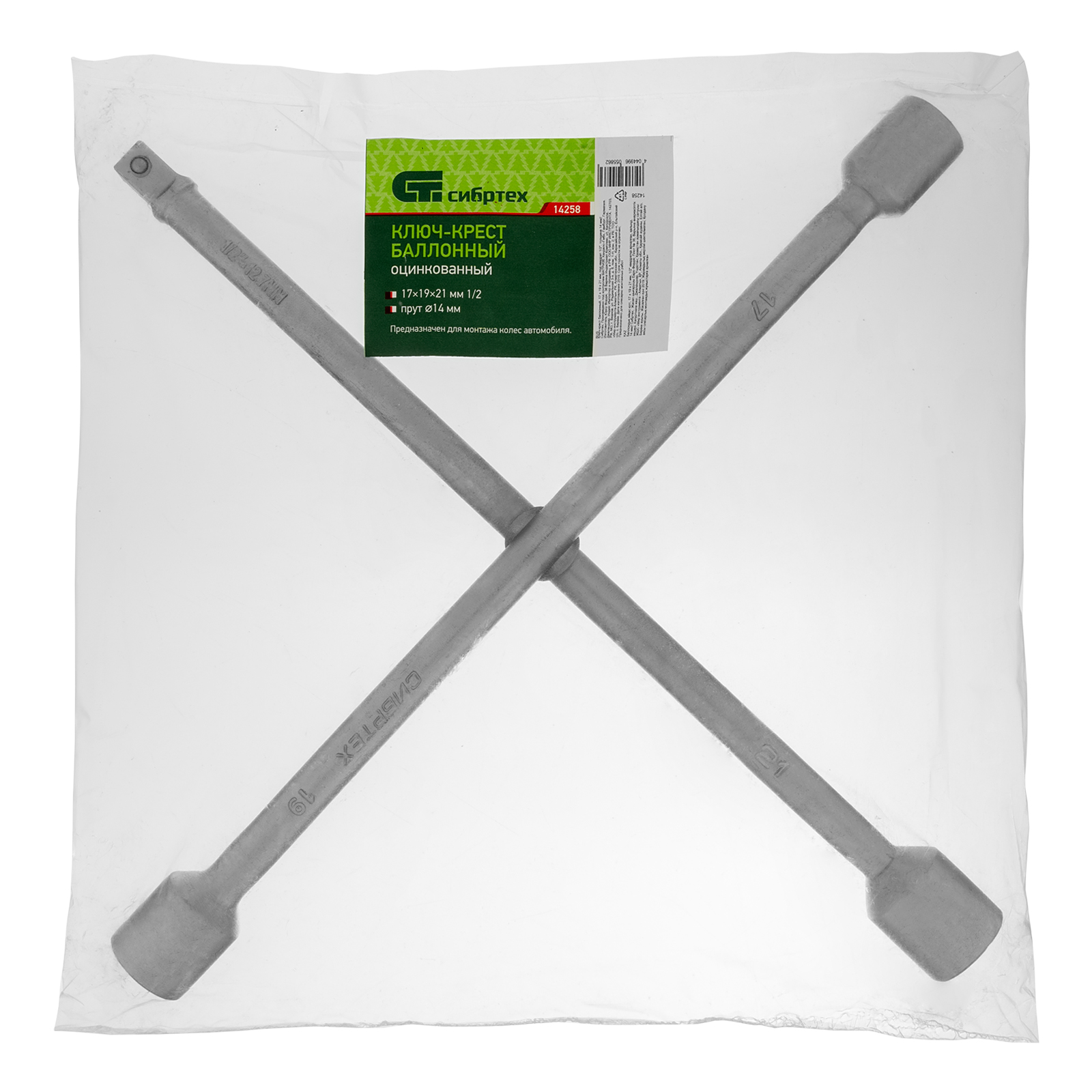 Баллонный ключ-крест Сибртех 14258 под квадрат 1/2", с толщиной прутьев 14 мм и размерами головок 17, 19, 21 мм используется для снятия и монтажа автомобильных колес. 3 несъемные шестигранные торцевые головки подходят для колесных гаек и болтов наиболее распространенных размеров. Инструмент будет полезен работникам станций шиномонтажа и автосервисов, а также пригодится автовладельцам.