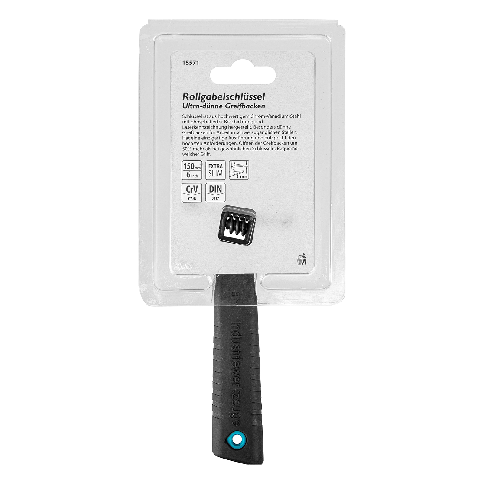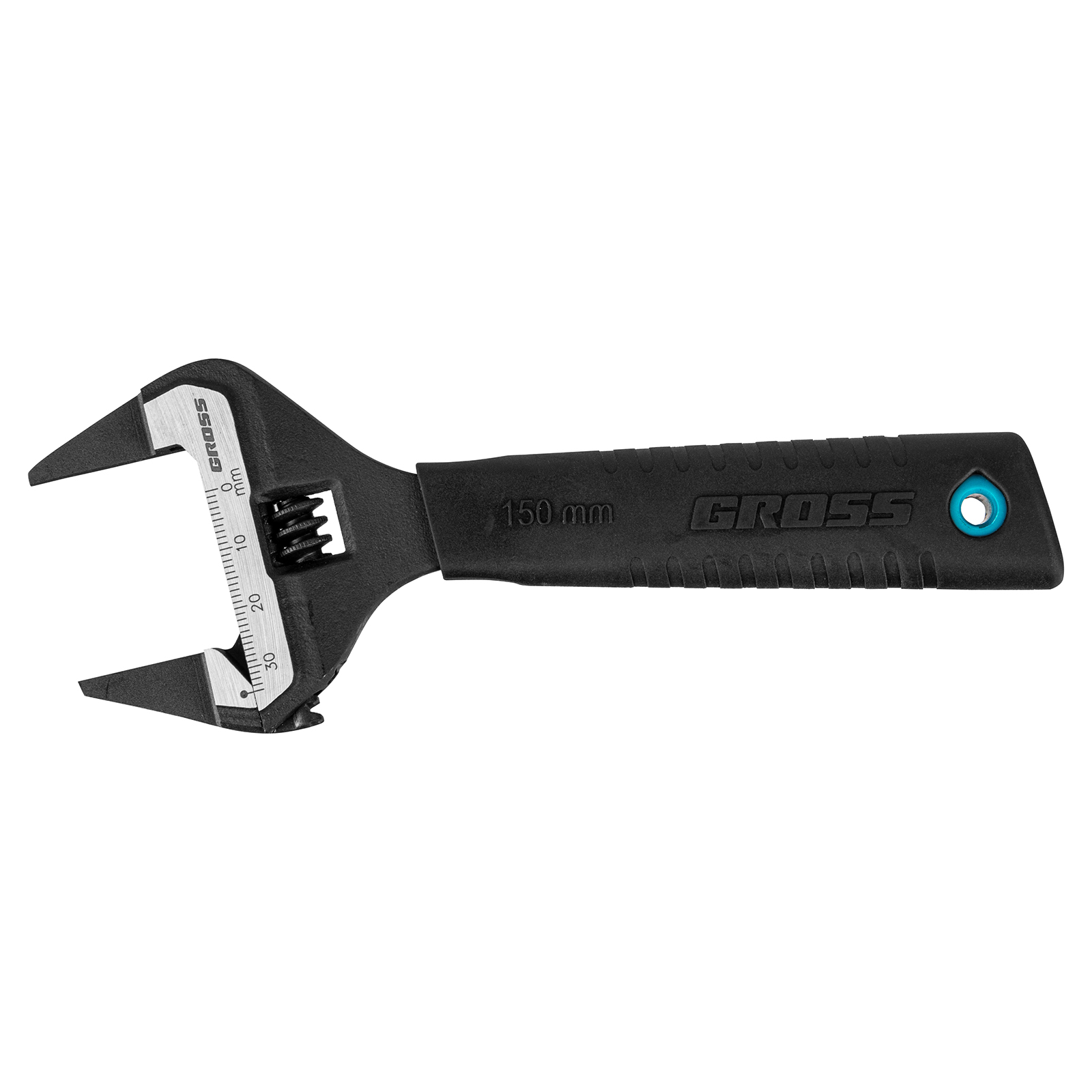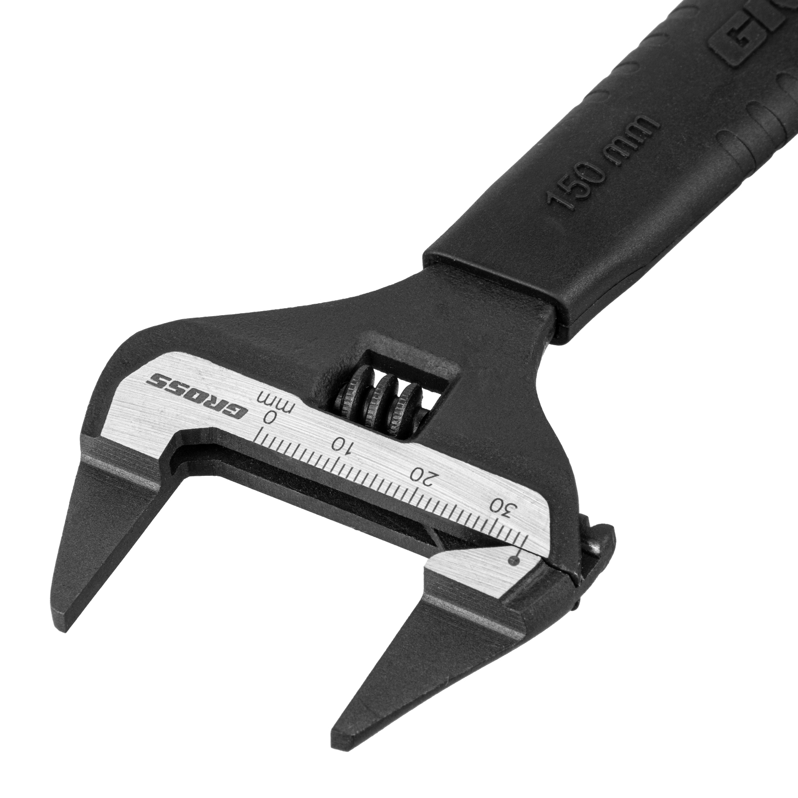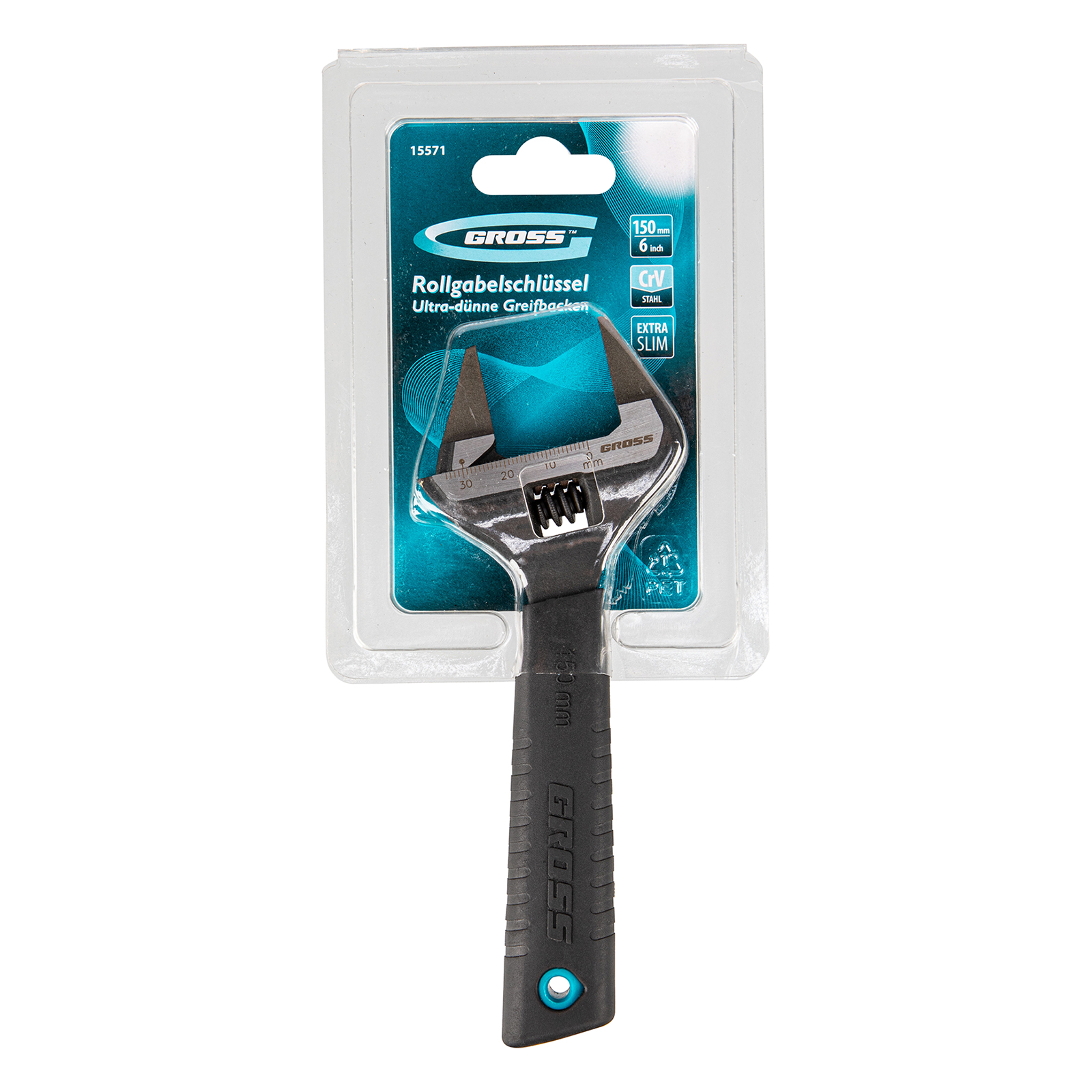 Разводной ключ Gross 15571 длиной 150 мм, из стали CrV, с ультратонкими губками, оптимален для монтажа и демонтажа крепежных элементов диаметром до 34 мм. Имеет широкую область применения: сантехнические работы, мелкий бытовой ремонт, полупрофессиональное использование и т. д. Благодаря ультратонким губкам инструмент особенно удобен для работы в труднодоступных местах.