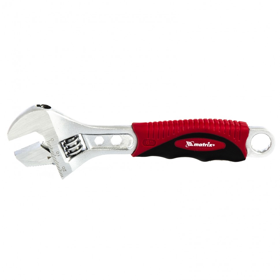 Разводной ключ Matrix 15516 длиной 150 мм, с переставной губкой и двухкомпонентной рукояткой, предназначен для выполнения монтажных работ. Способен заменить целый арсенал гаечных ключей, поскольку справляется с болтами разного размера. Переставная губка с зазубринами позволяет использовать ключ для работы предметами без специального профиля, например, трубами.