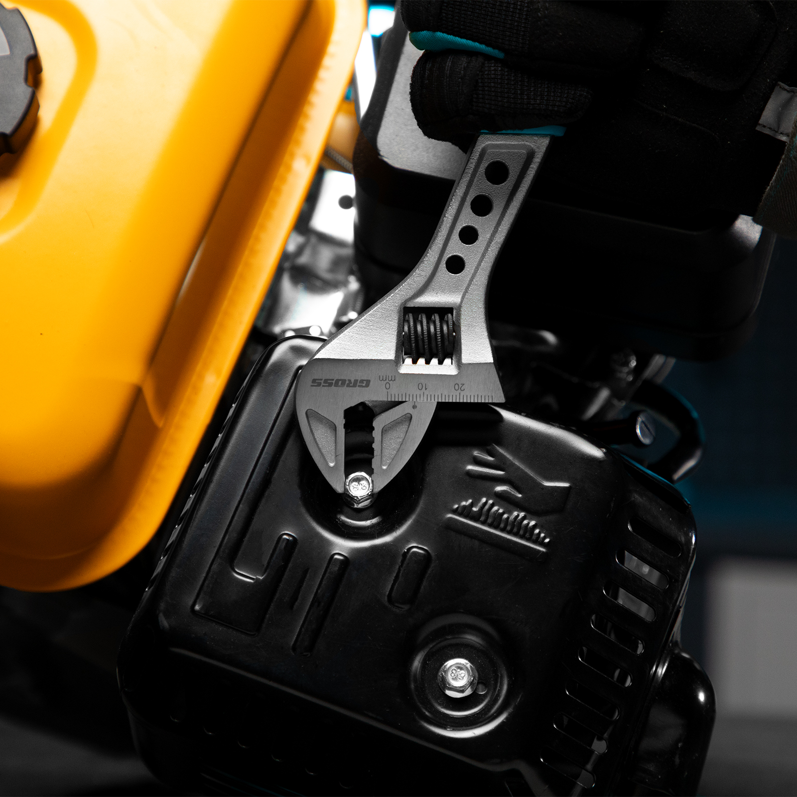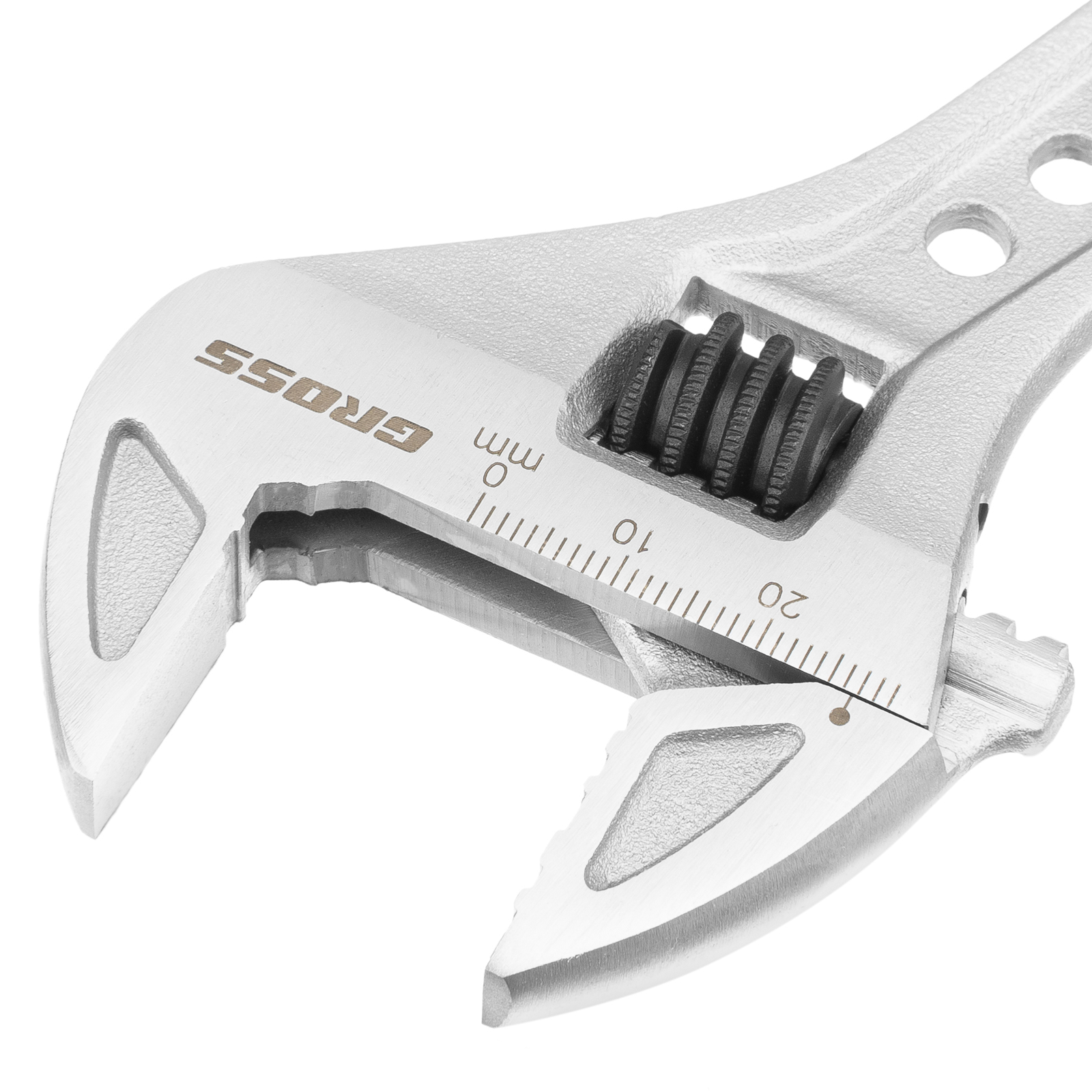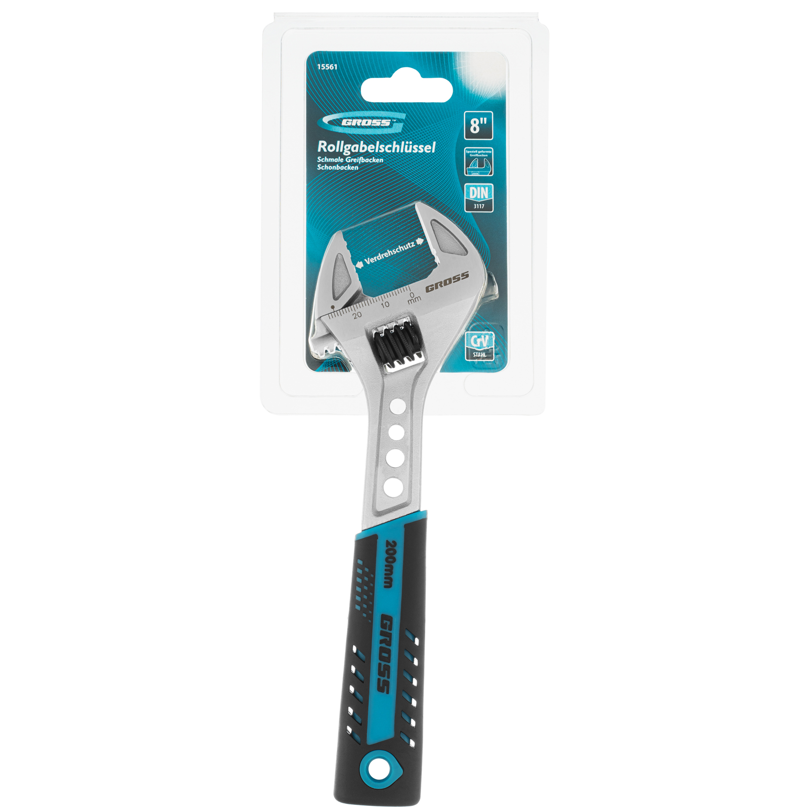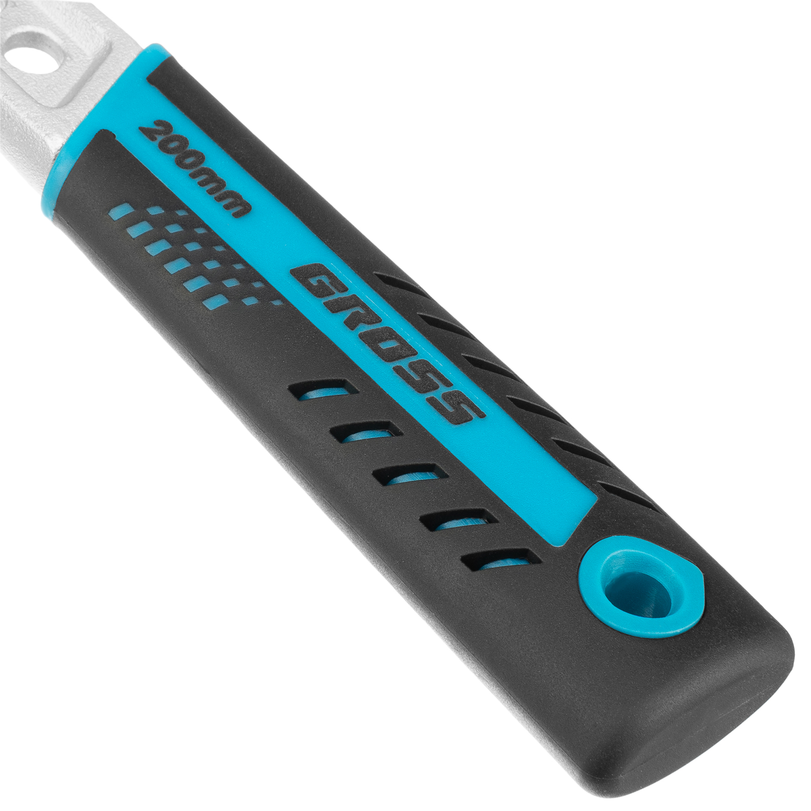 Разводной ключ Gross 15561 длиной 200 мм, из стали CrV, с двухкомпонентной ручкой, служит для монтажа и демонтажа крепежных элементов. Губки со специальными насечками надежно захватывают детали и не скользят по их поверхности. Максимальная ширина раскрытия губок составляет 28 мм, что позволяет работать с предметами разного размера и формы.