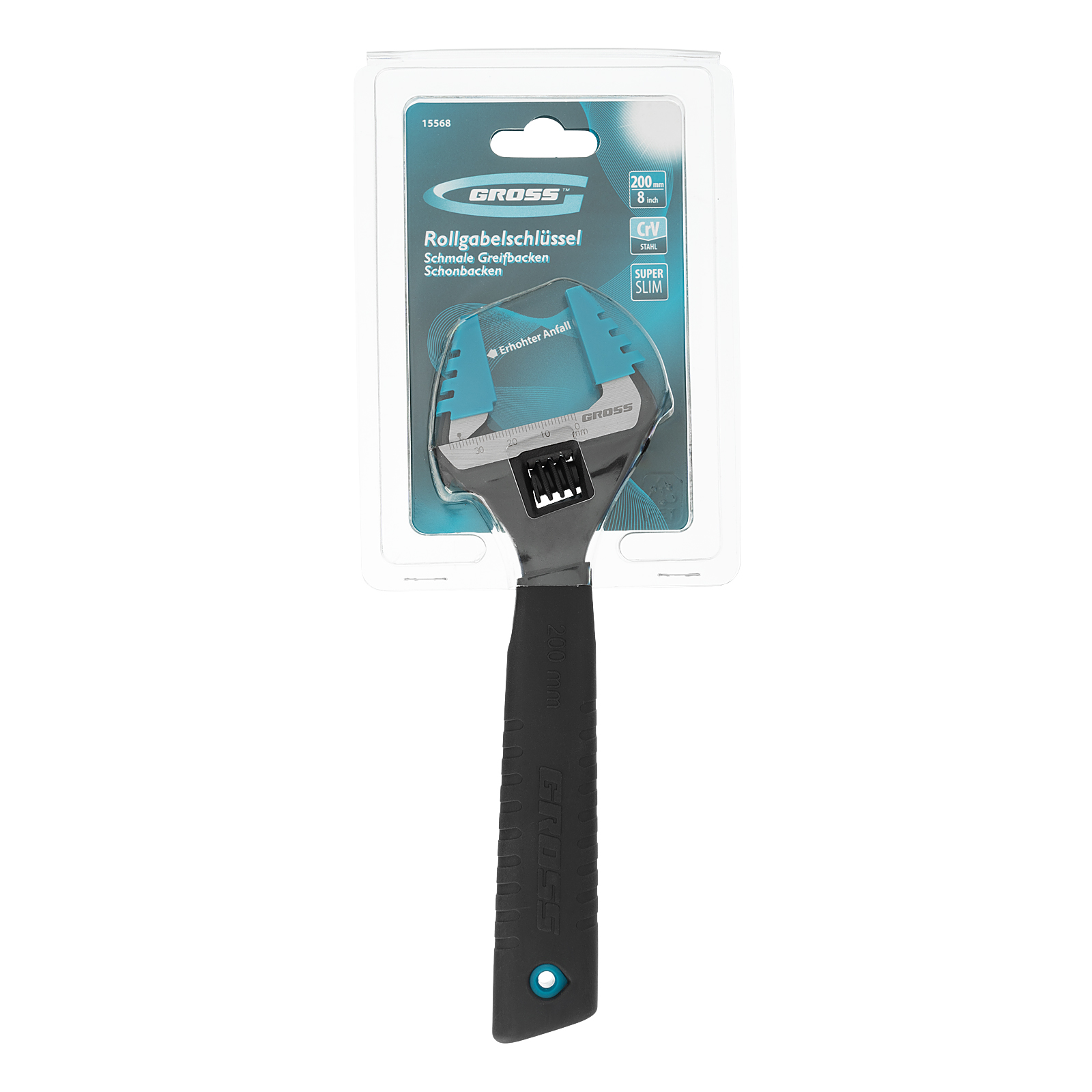 Разводной ключ Gross 15568 из стали CrV, длиной 200 мм, с тонкими губками и защитными насадками, обеспечивает ширину раскрытия губок на 30% больше, чем у стандартных моделей. Инструмент подходит для монтажа и демонтажа крепежных элементов диаметром до 40 мм. Применяется для сантехнических работ, ремонта автомобилей, решения бытовых задач. Тонкие губки легко проникают в труднодоступные места, а также удобны для захвата мелких деталей.