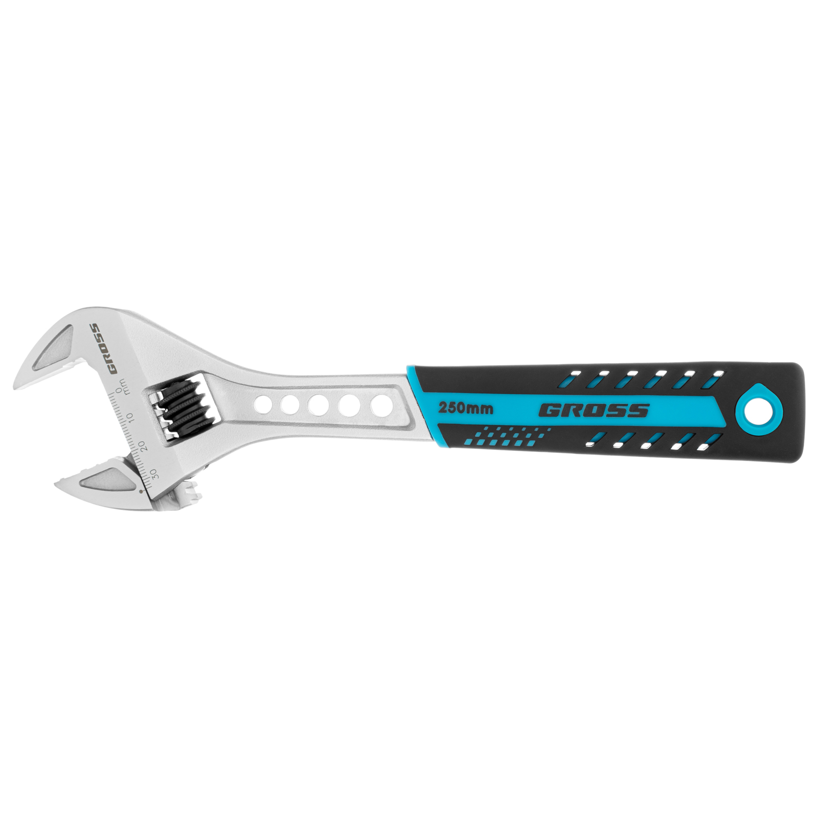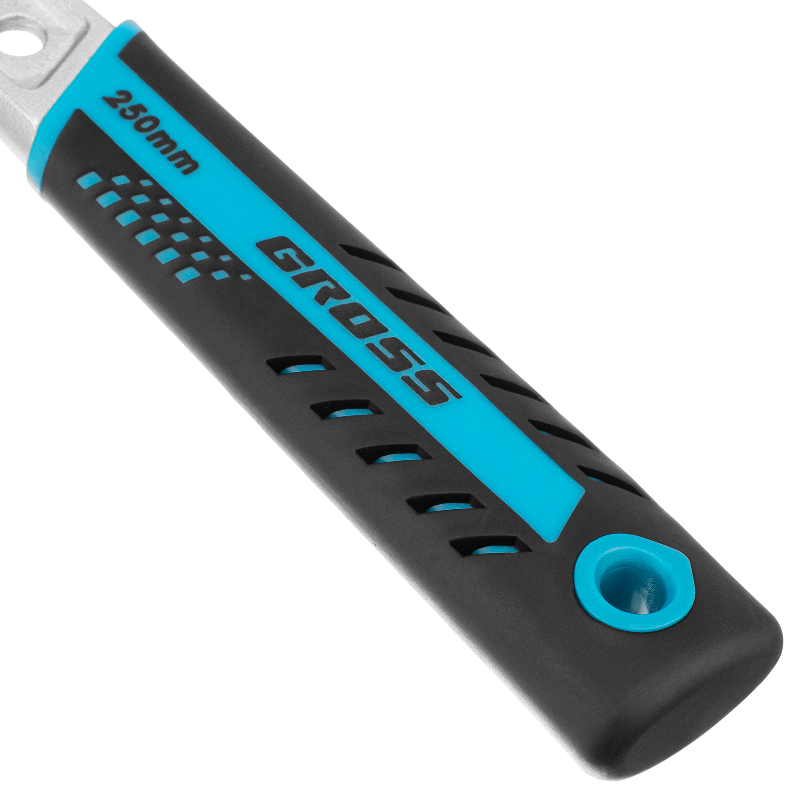 Разводной ключ Gross 15562 длиной 250 мм, из стали CrV, с двухкомпонентной ручкой, служит для монтажа и демонтажа крепежных элементов. Губки со специальными насечками надежно захватывают детали и не скользят по их поверхности. Максимальная ширина раскрытия губок составляет 35 мм, что позволяет работать с предметами разного размера и формы.