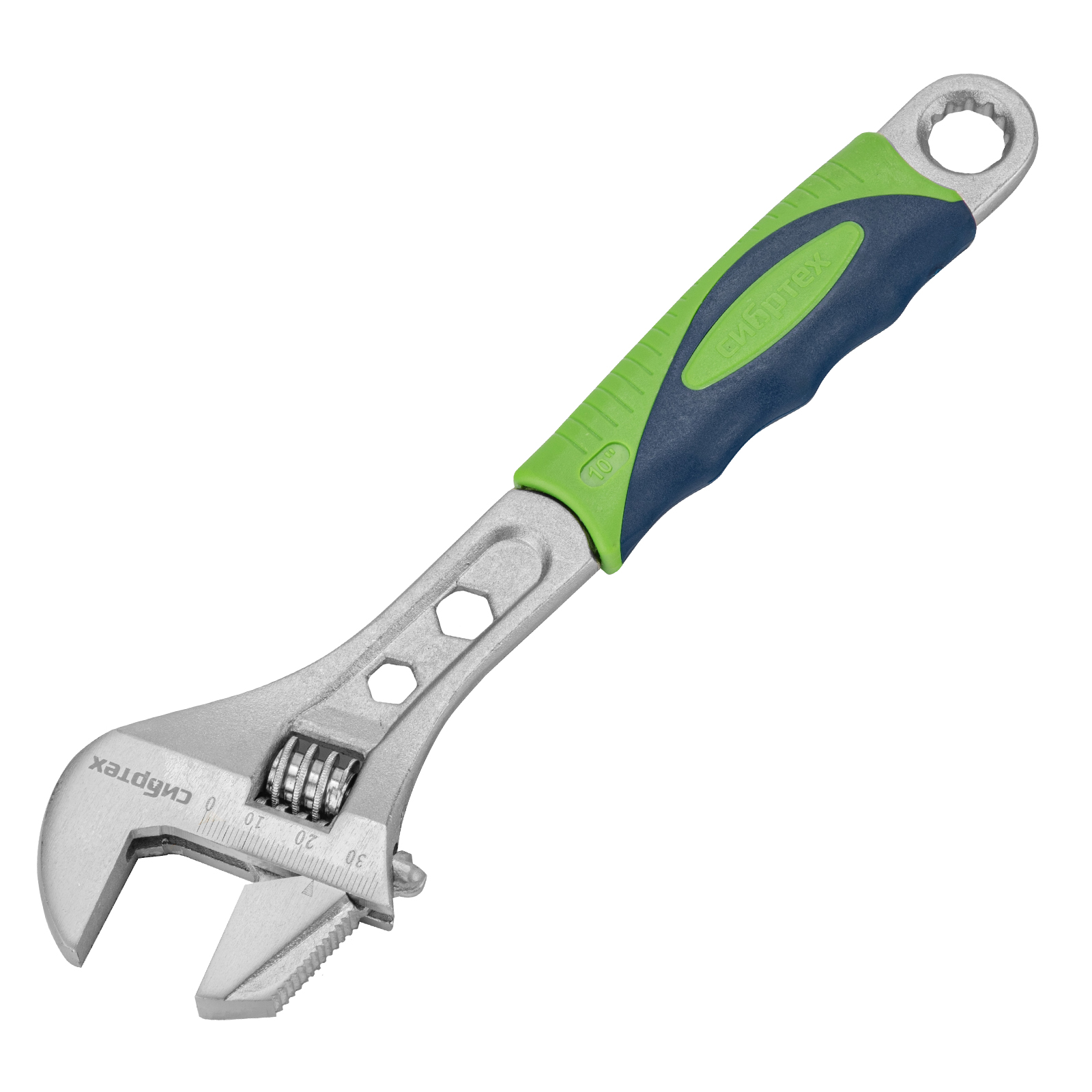 Разводной ключ Сибртех 15599 длиной 250 мм, с переставной губкой и двухкомпонентной рукояткой, предназначен для выполнения монтажных работ. Позволяет справляться с болтами разного размера и способен заменить целый арсенал гаечных ключей. Переставная губка с зазубринами позволяет использовать ключ для работы предметами без специального профиля, например, трубами.
