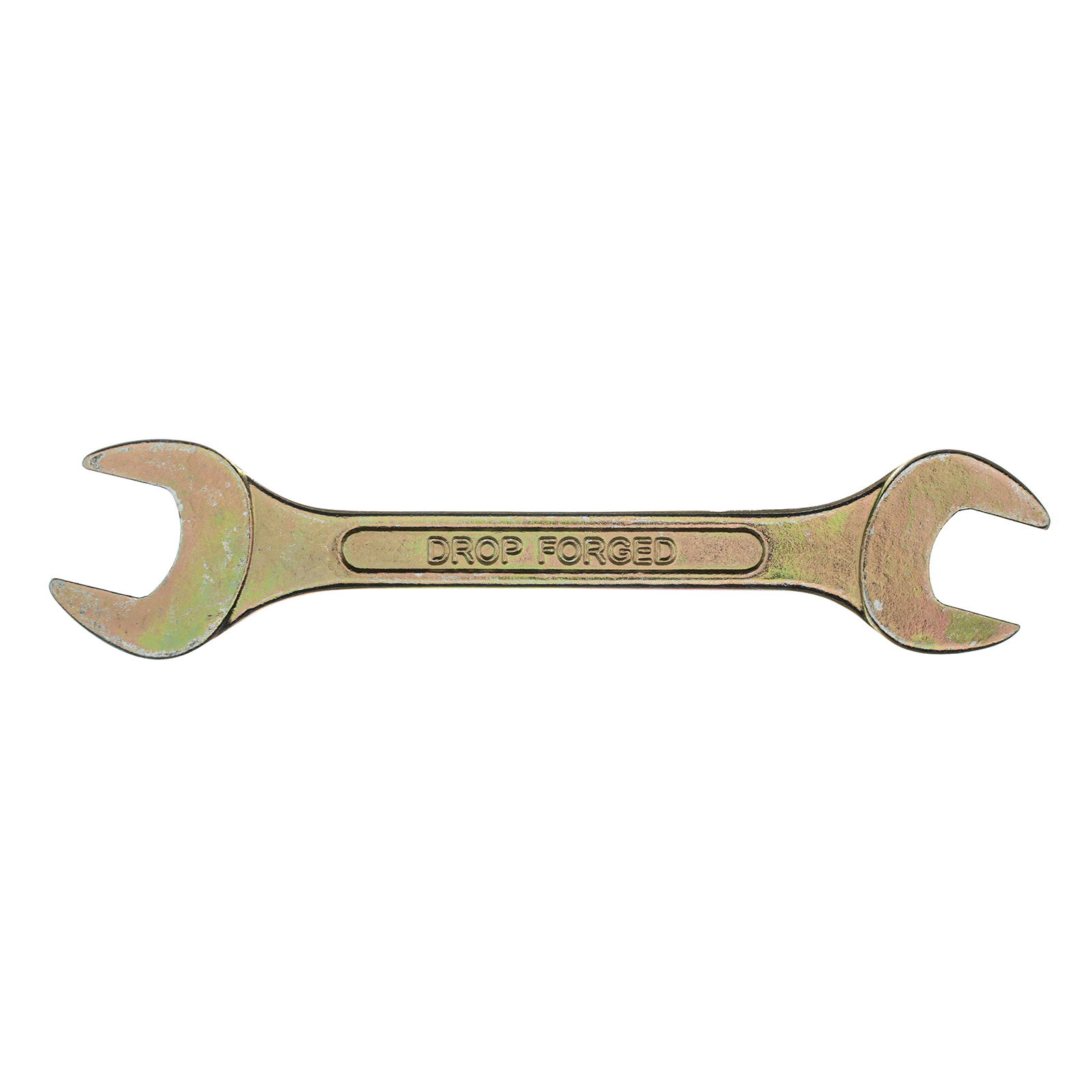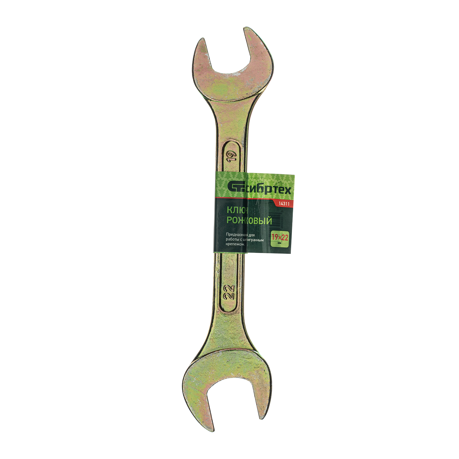Рожковый ключ Сибртех 14311 с покрытием из желтого цинка имеет две рабочие части с размером зева 19 и 22 мм и предназначен для закручивания и откручивания резьбовых крепежей с шестигранными головками. Губки расположены под небольшим углом к оси тела ключа, что повышает удобство работы в ограниченном пространстве. Инструмент пригодится для проведения монтажных работ, сборки и разборки оборудования, ремонта техники, а также будет полезен в быту.