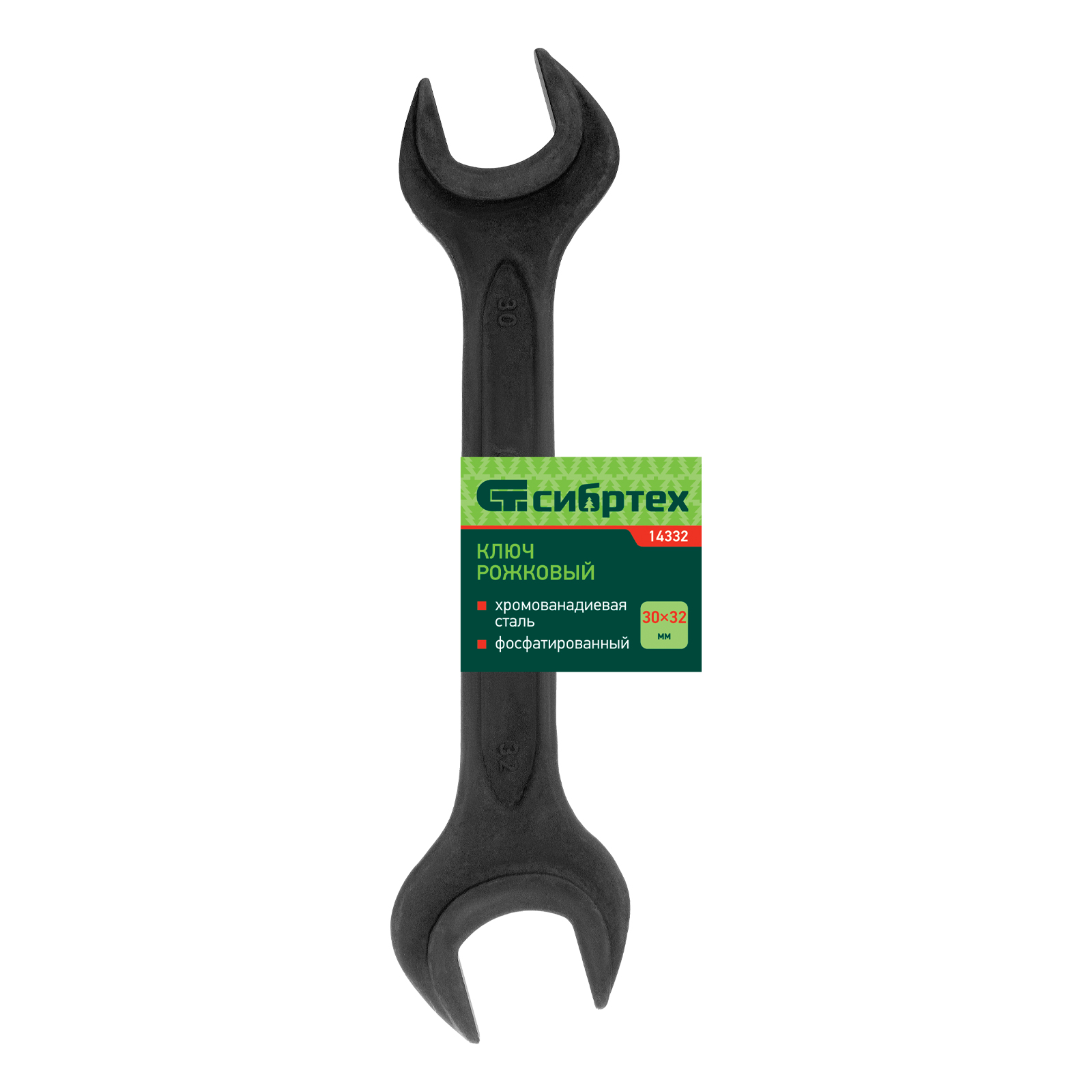 <p>Фосфатированный рожковый ключ Сибртех 14332, 30 х 32 мм, из стали CrV, ГОСТ 2839, используется для монтажа и демонтажа шестигранных резьбовых крепежей. Удобен для работы в труднодоступных местах, т.к. губки расположены под углом к оси тела ключа. Инструмент будет полезен в сервисном центре, авторемонтной мастерской, при монтаже оборудования, а также пригодится дома или на даче.</p><h2>Преимущества</h2><ul><li>Прочность и устойчивость к механическим нагрузкам — ключ изготовлен из кованой стали хромованадиевой группы методом горячей ковки, прошел отжиг, закалку и последующий отпуск.</li><li>Повышенная износостойкость — твердость рабочих частей составляет 42-47 HRC, что соответствует требованиям ГОСТа.</li><li>Долговечность — инструмент фосфатирован для защиты от коррозии.</li></ul>