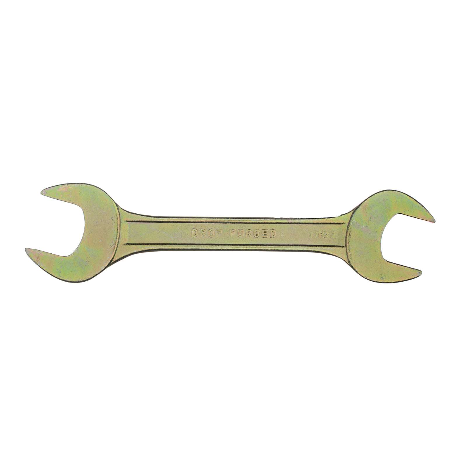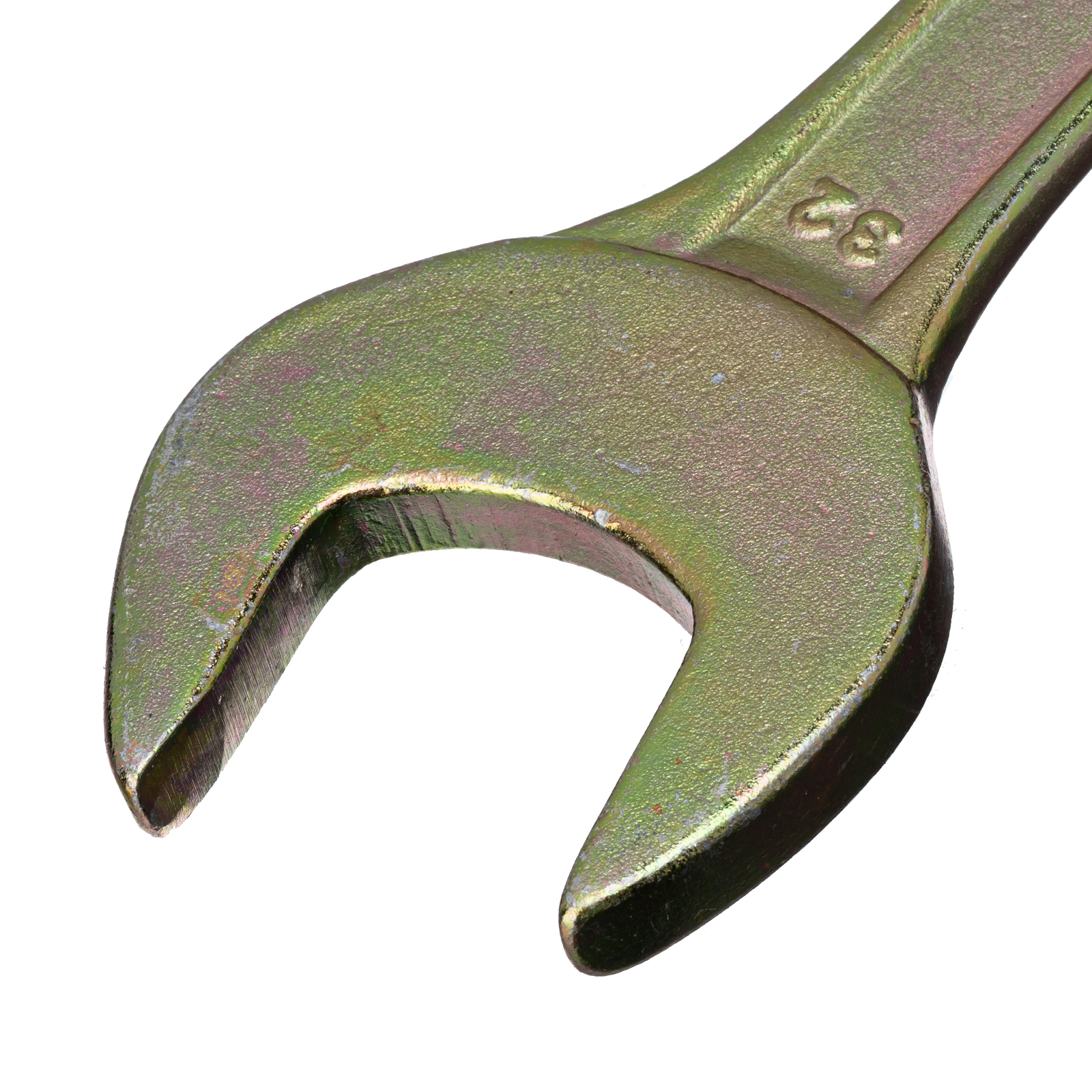 Рожковый ключ Сибртех 14315 с покрытием из желтого цинка имеет две рабочие части с размером зева 30 и 32 мм и предназначен для закручивания и откручивания резьбовых крепежей с шестигранными головками. Губки расположены под небольшим углом к оси тела ключа, что повышает удобство работы в ограниченном пространстве. Инструмент пригодится для проведения монтажных работ, сборки и разборки оборудования, ремонта техники, а также будет полезен в быту.