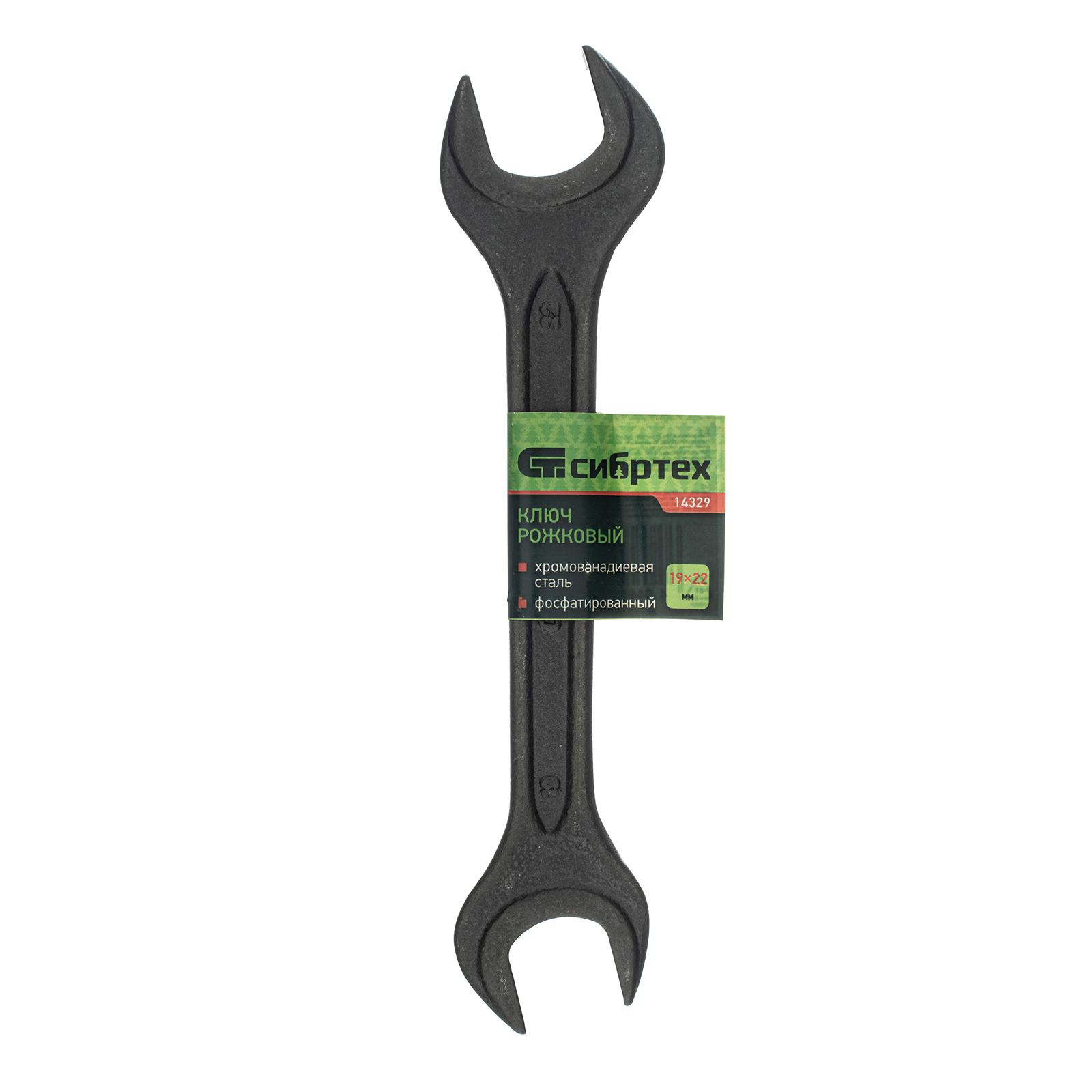 <p>Фосфатированный рожковый ключ Сибртех 14329, 19 х 22 мм, из стали CrV, ГОСТ 2839, используется для монтажа и демонтажа шестигранных резьбовых крепежей. Удобен для работы в труднодоступных местах, т.к. губки расположены под углом к оси тела ключа. Инструмент будет полезен в сервисном центре, авторемонтной мастерской, при монтаже оборудования, а также пригодится дома или на даче.</p><h2>Преимущества</h2><ul><li>Прочность и устойчивость к механическим нагрузкам — ключ изготовлен из кованой стали хромованадиевой группы методом горячей ковки, прошел отжиг, закалку и последующий отпуск.</li><li>Повышенная износостойкость — твердость рабочих частей составляет 42-47 HRC, что соответствует требованиям ГОСТа.</li><li>Долговечность — инструмент фосфатирован для защиты от коррозии.</li></ul>