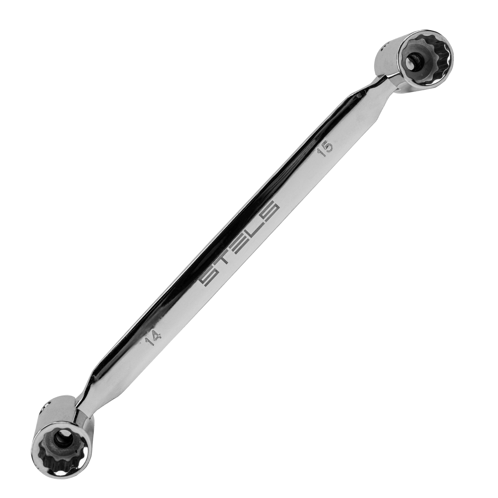 Шарнирный ключ Stels 14955 из стали CrV, имеет 2 рабочие головки размером 14 и 15 мм, с 12-гранным профилем, и предназначен для работы с болтовыми и гаечными соединениями. Головки обеспечивают плотный обхват крепежа и удобны для работы в стесненных условиях — величина хода составляет всего 30°. Ключ используется для ремонта автомобилей и других слесарно-монтажных работ.