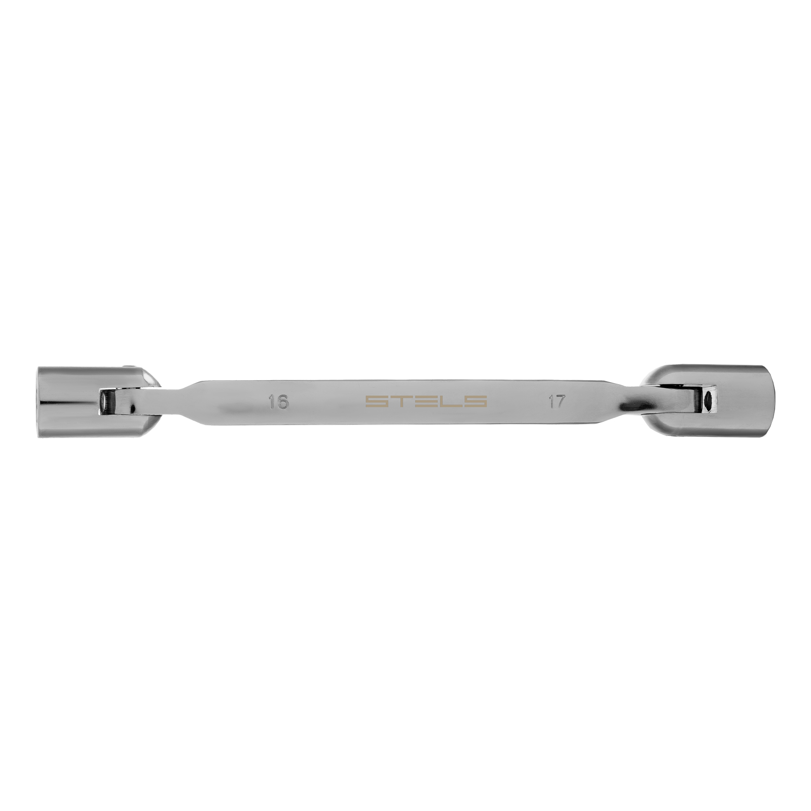 Шарнирный ключ Stels 14959 из стали CrV, имеет 2 рабочие головки размером 16 и 17 мм, с 12-гранным профилем, и предназначен для работы с болтовыми и гаечными соединениями. Головки обеспечивают плотный обхват крепежа и удобны для работы в стесненных условиях — величина хода составляет всего 30°. Ключ используется для ремонта автомобилей и других слесарно-монтажных работ.