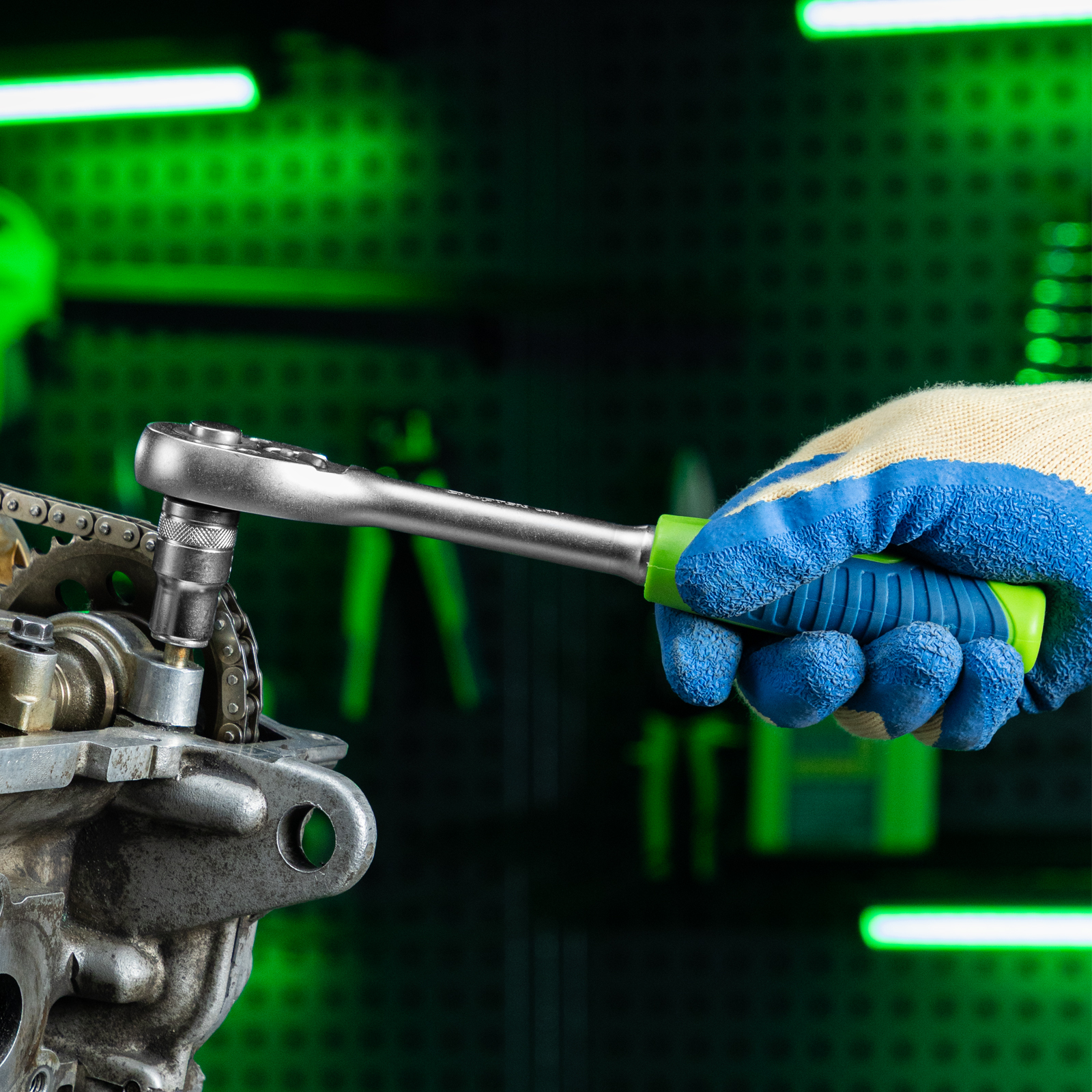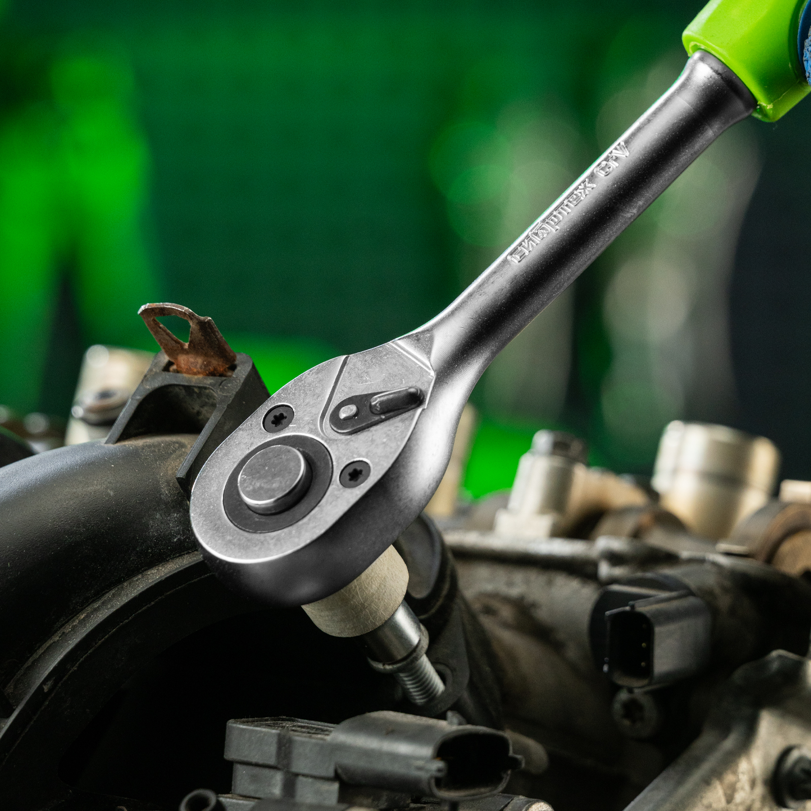 - Простая установка и замена насадки — механизм быстрого сброса позволяет моментально снимать торцевую головку.