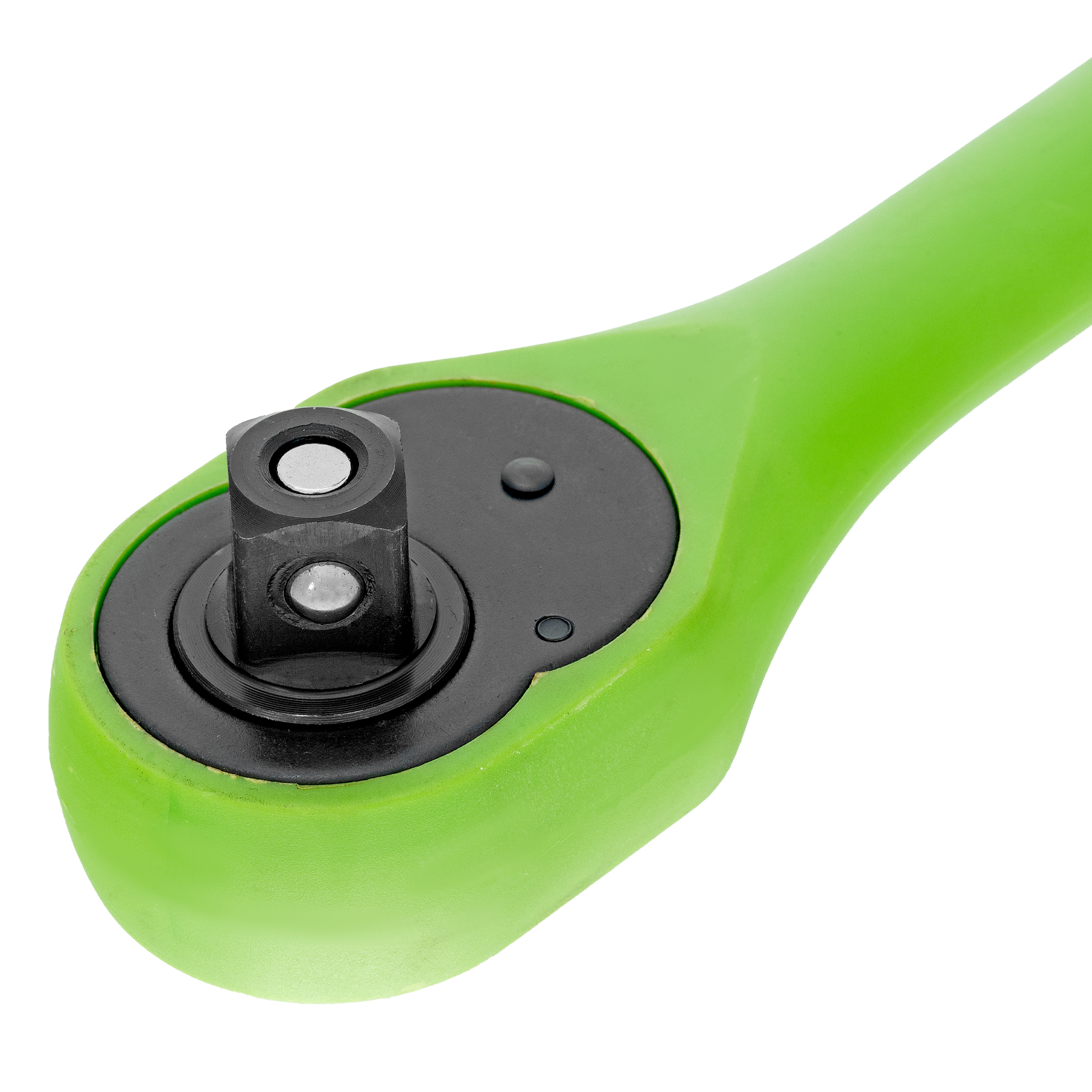 - Надежная фиксация оснастки — металлический шарик-держатель не допускает выпадение торцевых головок, адаптеров и удлинителей.