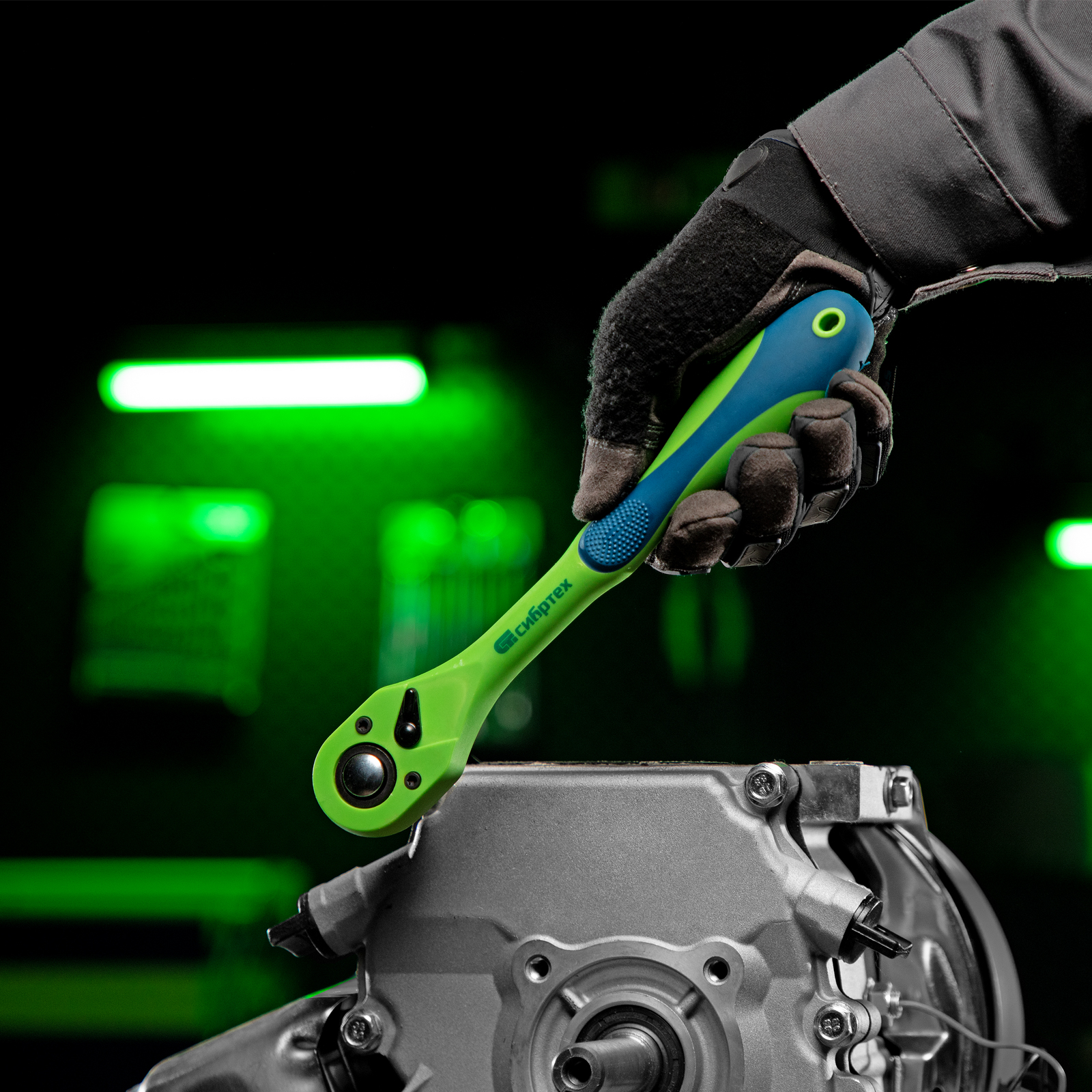 Ключ-трещотка Сибртех 14009 с двухкомпонентной рукояткой и присоединительным квадратом 1/2" используется с торцевыми головками, имеющими посадочное гнездо соответствующего размера. Предназначен для закручивания и раскручивания резьбовых соединений. Храповой механизм с 72 зубцами обеспечивает плавное вращение. Ключ применяется для ремонта автомобилей, техники и оборудования, а также пригодится дома или на даче.