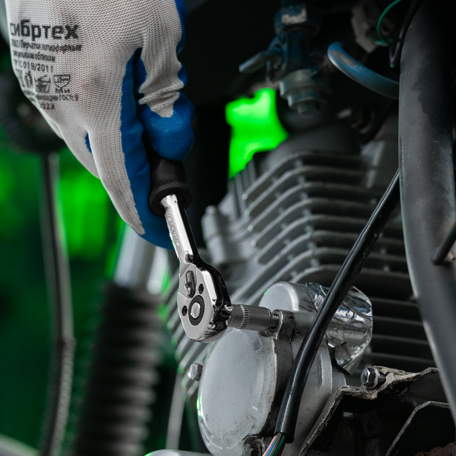 - Надежная фиксация — шариковый замок крепко удерживает торцевую головку, поэтому она не соскочит во время работы.