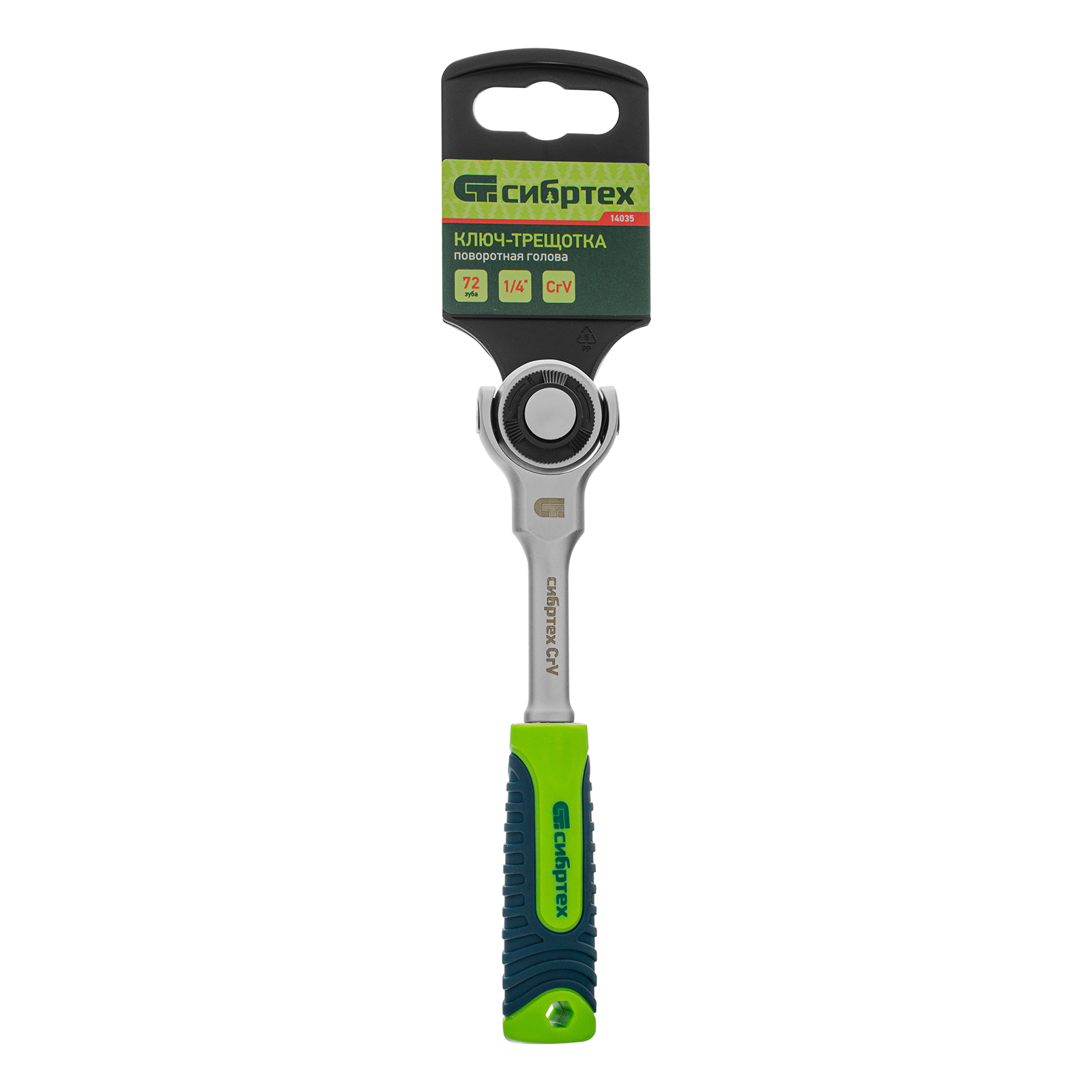 Ключ-трещотка Сибртех 14035 с 72 зубьями и присоединительным квадратом 1/4″, с поворотной головой и функцией быстрого сброса, предназначен для закручивания и откручивания резьбового крепежа. Поворотная голова облегчает работу, особенно в труднодоступных местах. Инструмент пригодится дома, в мастерской и гараже.