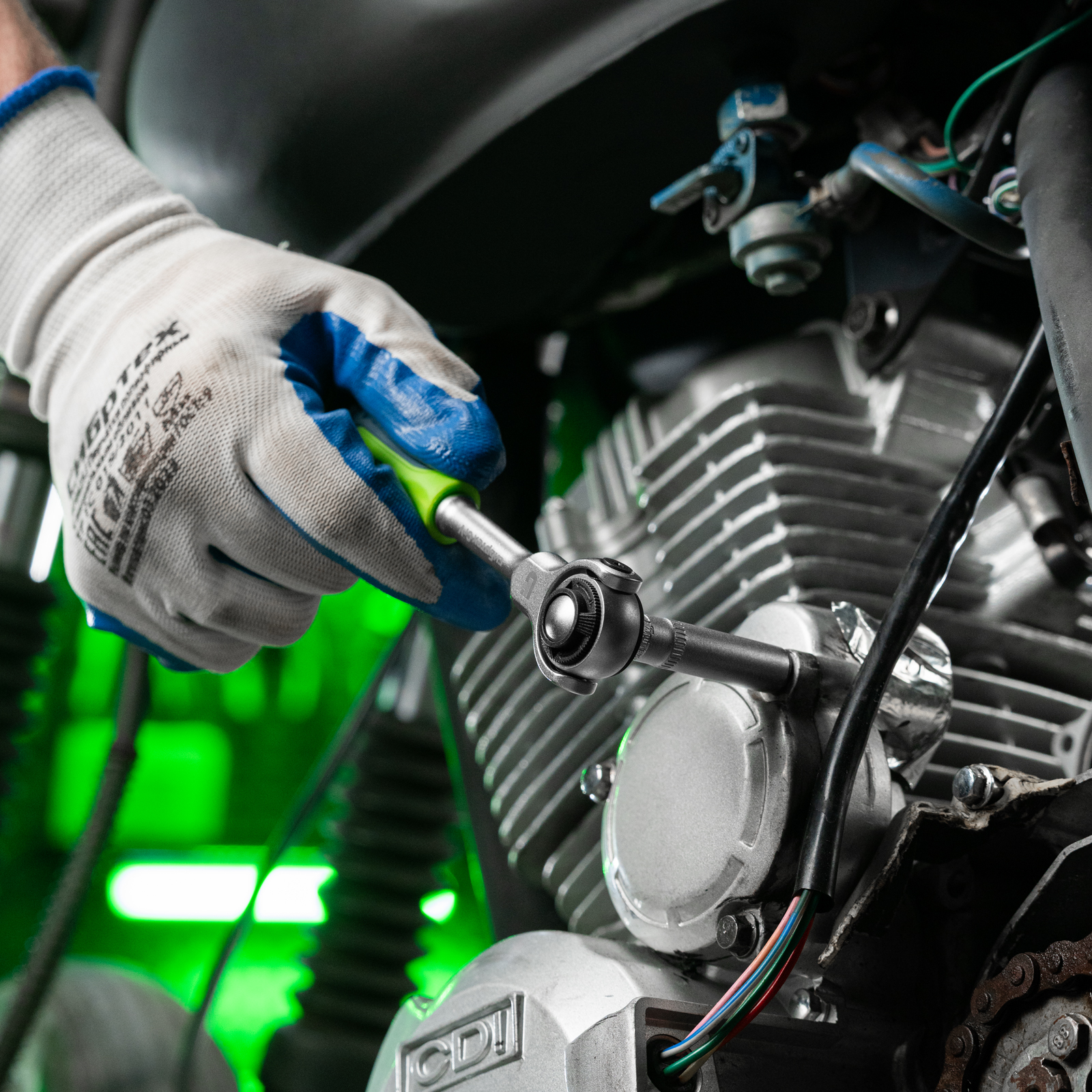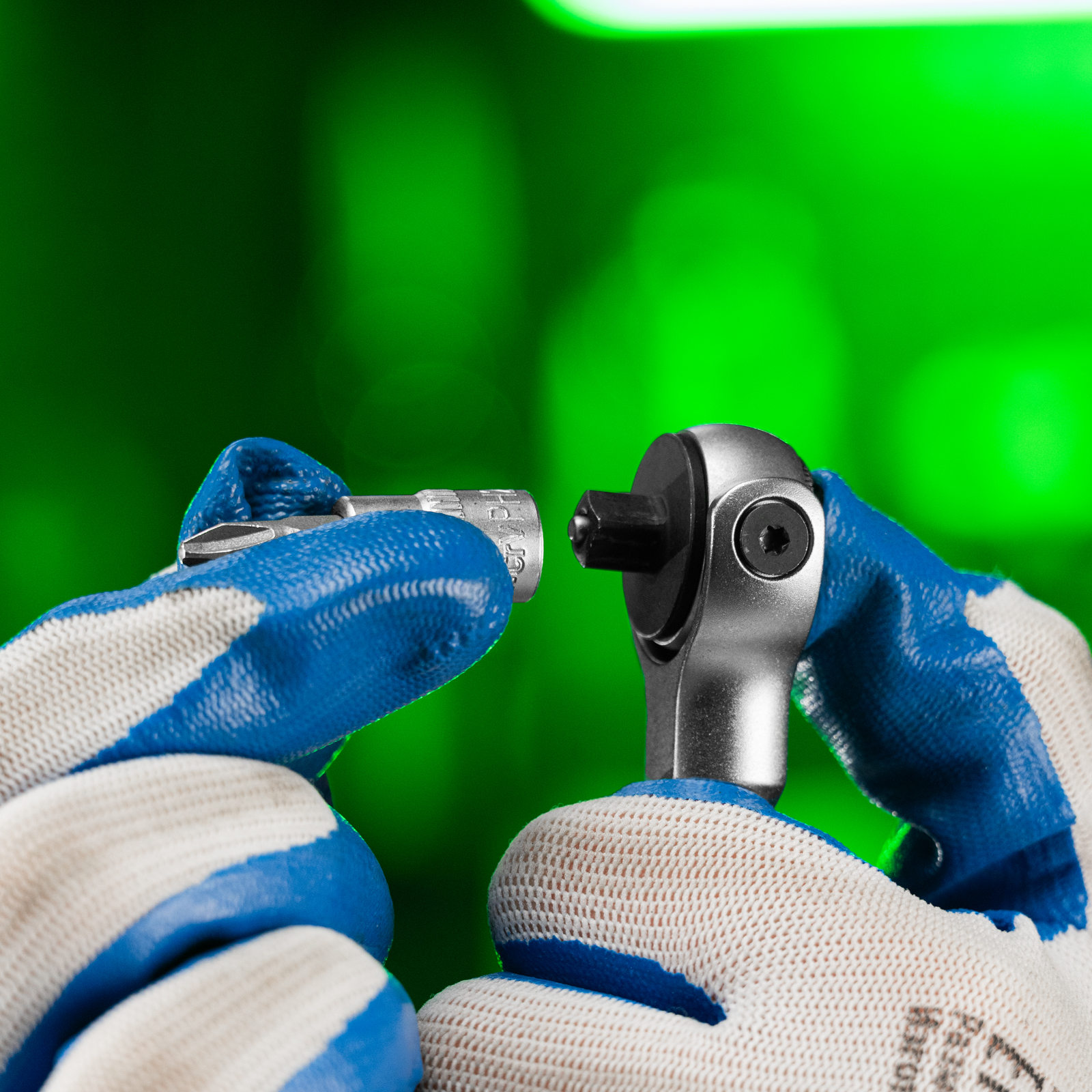 - Надежная фиксация насадок — шариковый замок крепко удерживает торцевую головку.