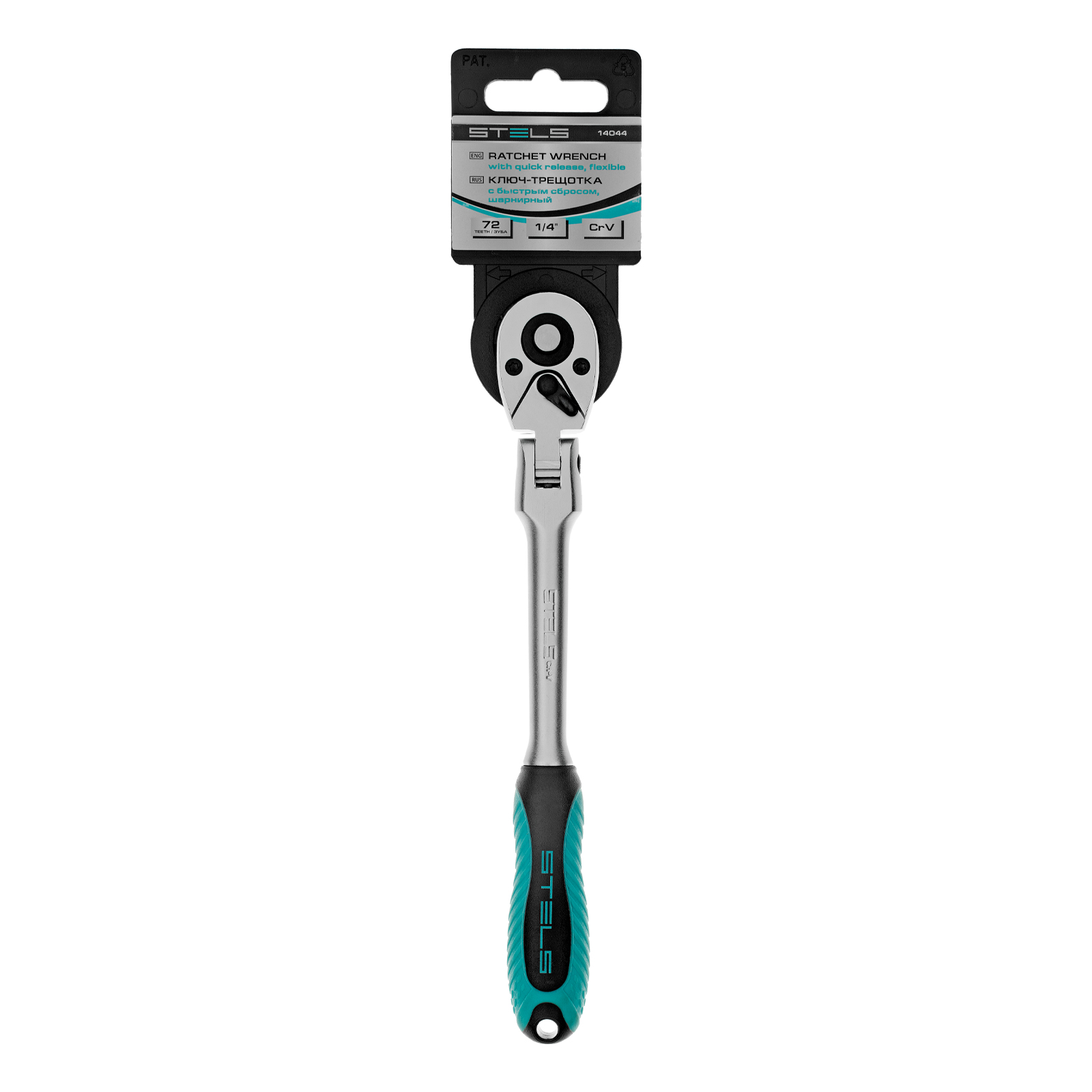 Шарнирный ключ-трещотка Stels 14044 из стали CrV, с 72 зубцами и быстрым сбросом, совместим с торцевыми головками, адаптерами и удлинителями с посадочным гнездом 1/4". Предназначен для закручивания и раскручивания резьбовых соединений. Исключительная плавность хода обеспечивается 72-зубым храповым механизмом. Ключом можно работать в ограниченном пространстве — шаг трещотки составляет всего 5°. Инструмент будет полезен в сервисной мастерской, автотехцентре, а также дома, на даче или в поездке.