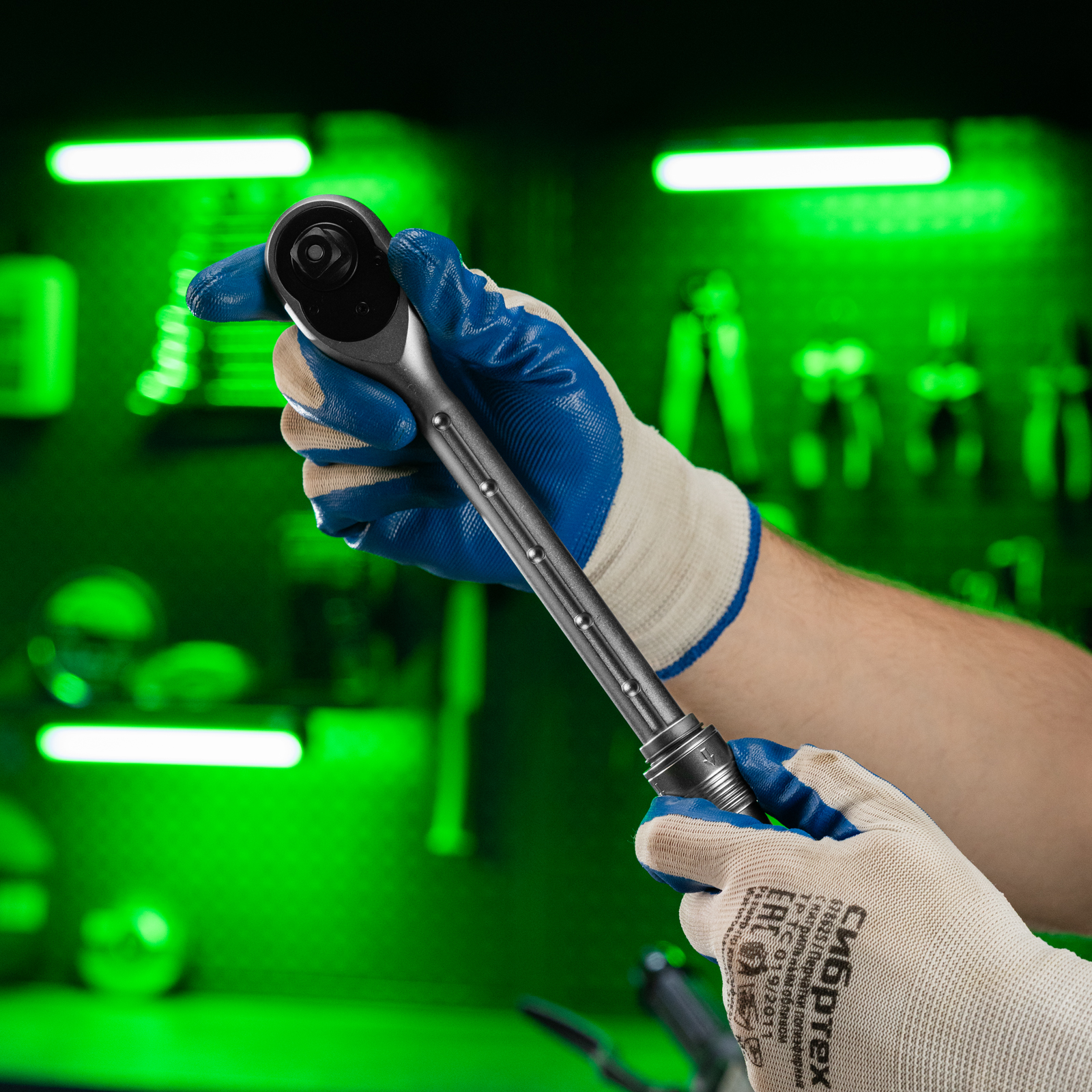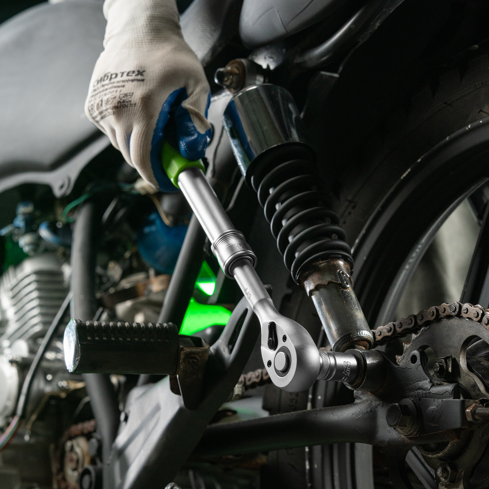 - Надежная фиксация насадок — шариковый замок крепко удерживает торцевую головку.