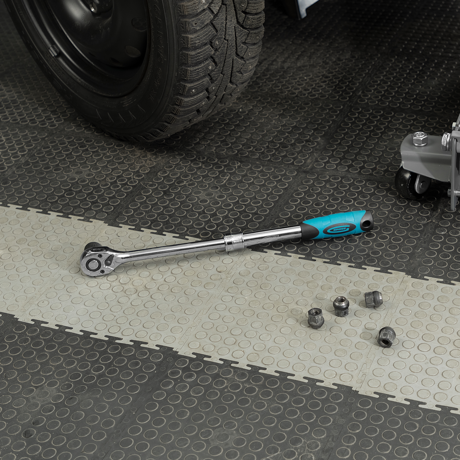 Высокая износостойкость — ключ-трещотка изготовлен из прочной стали хромованадиевой группы.