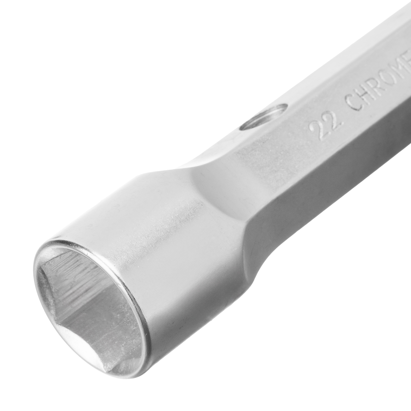 Усиленный торцевой ключ-трубка Stels 13777 из стали CrV имеет 2 рабочих профиля размером 22 и 24 мм и рассчитан на профессиональное применение. Подходит для монтажа/демонтажа болтовых соединений, шпилек и другого крепежа, требующего приложения значительных усилий. Продуманная форма ключа позволяет работать в труднодоступных местах.