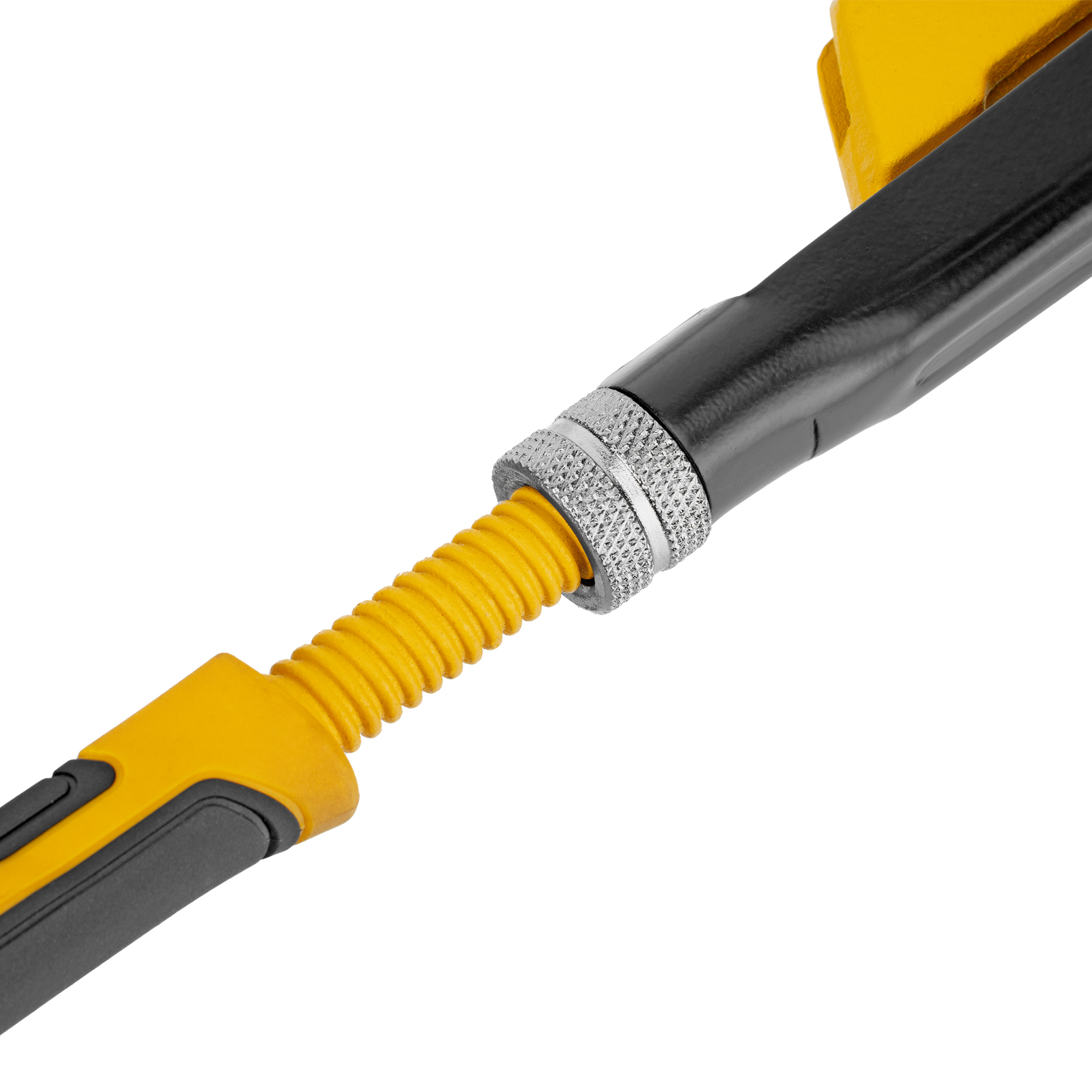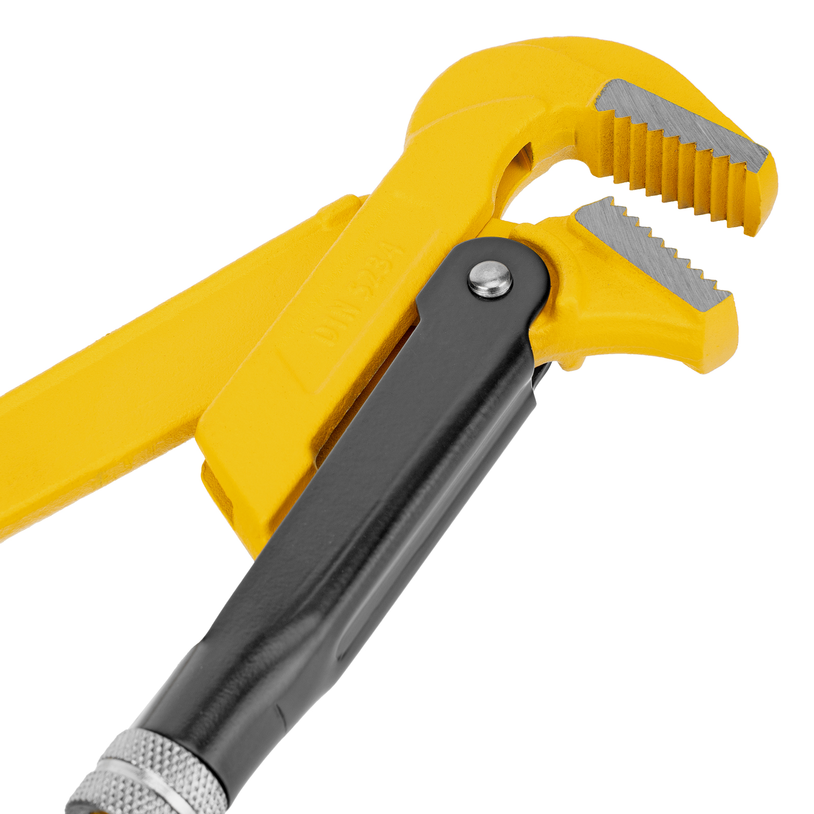 Цельнокованый трубный рычажный ключ №1 Denzel 15646 из стали CrV, тип «L», используется для захвата и вращения труб и фитингов диаметром 1″ без специальных граней. L-образная форма оптимальна для удержания плоских деталей. Рычажный механизм обеспечивает высокое прижимное усилие, повышая эффективность работы. Усиленная конструкция выдерживает интенсивные нагрузки и позволяет применять его как в быту, так и в профессиональной сфере — в автомастерских, ЖКХ и т.д.