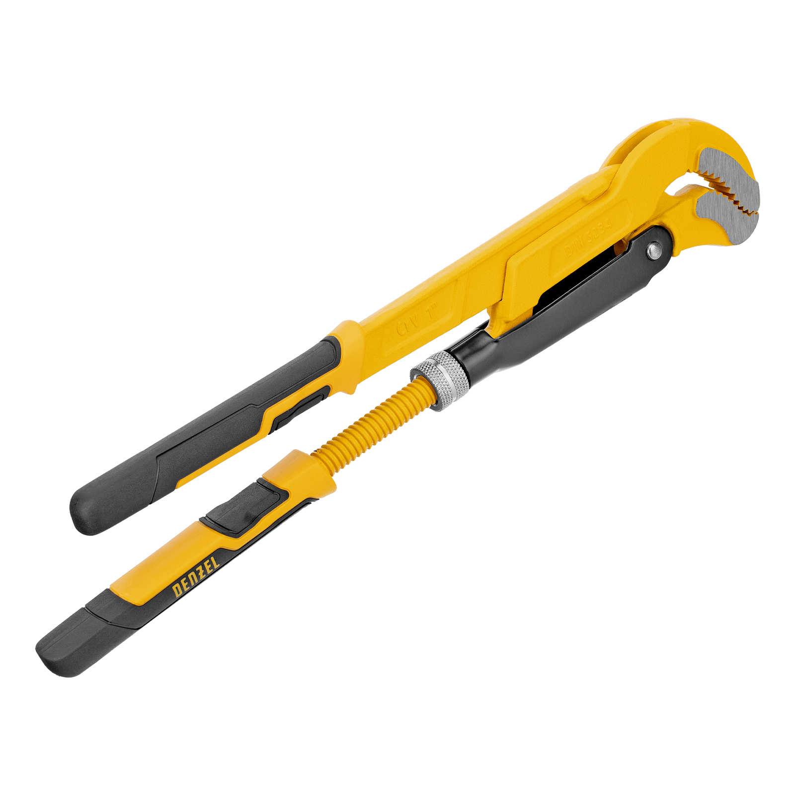 Цельнокованый трубный рычажный ключ №1 Denzel 15652 из стали CrV, тип «S», используется для захвата и вращения труб и фитингов диаметром 1″. Ключ с S-образными губками надежно удерживает детали сложной формы, а также позволяет работать в труднодоступных местах. Рычажный механизм обеспечивает высокое прижимное усилие, повышая эффективность работы. Усиленная конструкция выдерживает интенсивные нагрузки и позволяет применять его как в быту, так и в профессиональной сфере — в автомастерских, ЖКХ и т.д.
