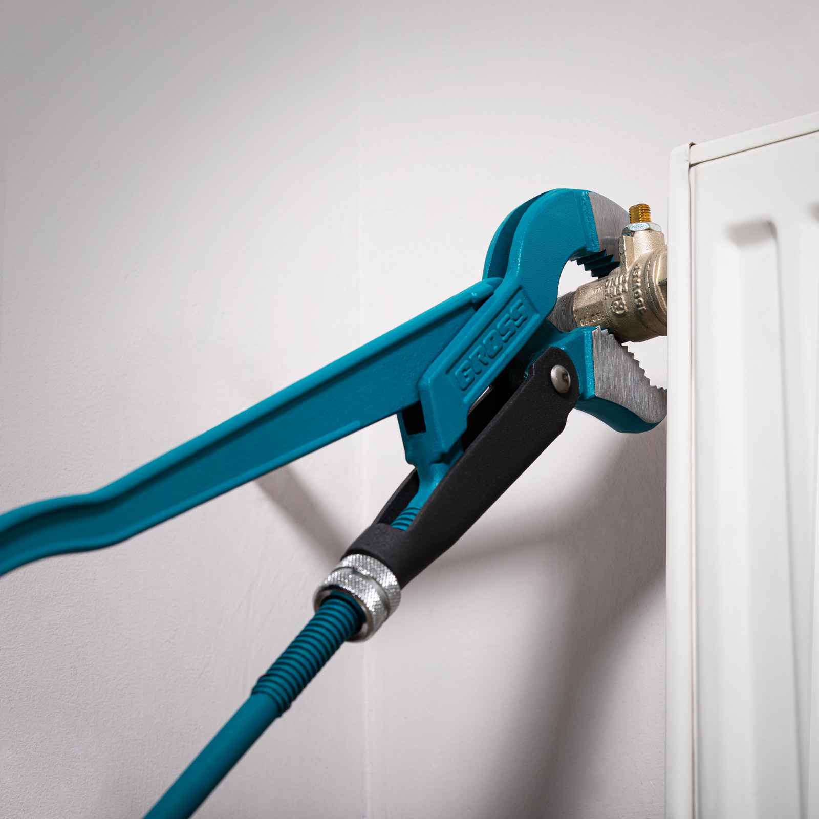 Цельнокованый трубный рычажный ключ Gross №2 15613 из стали CrV, тип «S», предназначен для захвата и вращения труб и соединительных деталей диаметром 1,5″. Ключ S-образной формы крепко захватывает плоские и объемные предметы, а также позволяет работать в труднодоступных местах. Рычажный механизм увеличивает прикладываемое усилие, что снижает усталость мастера. Инструмент выдерживает интенсивное использование, поэтому пригодится сотрудникам автосервиса, коммунальных служб, а также будет полезен в быту.