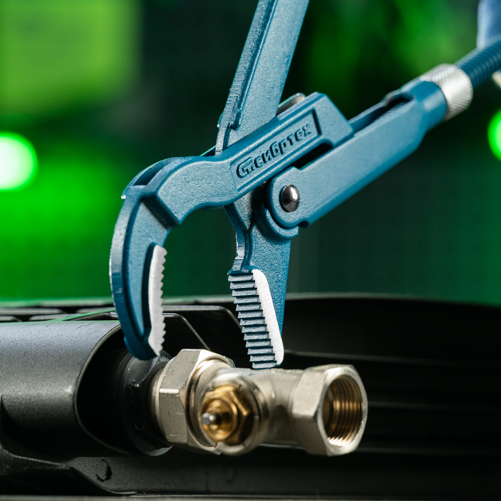 - Прочность и долговечность — кованая конструкция из закаленной легированной стали устойчива к нагрузке кручения, губки закалены до твердости 48-52 HRC.
