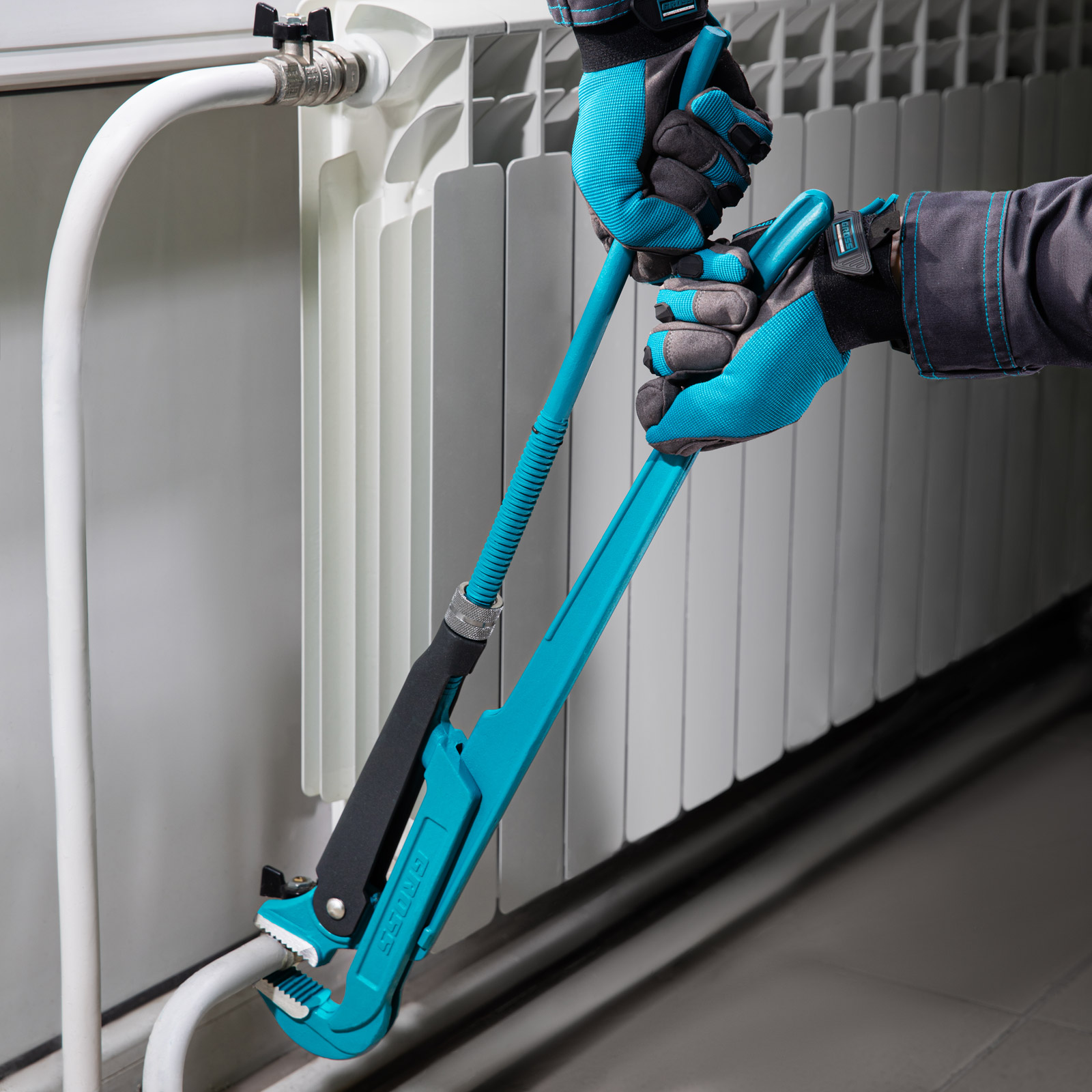 - Самоблокируемый захват труб и деталей — зубья прогрессивной формы наклонены против направления вращения.