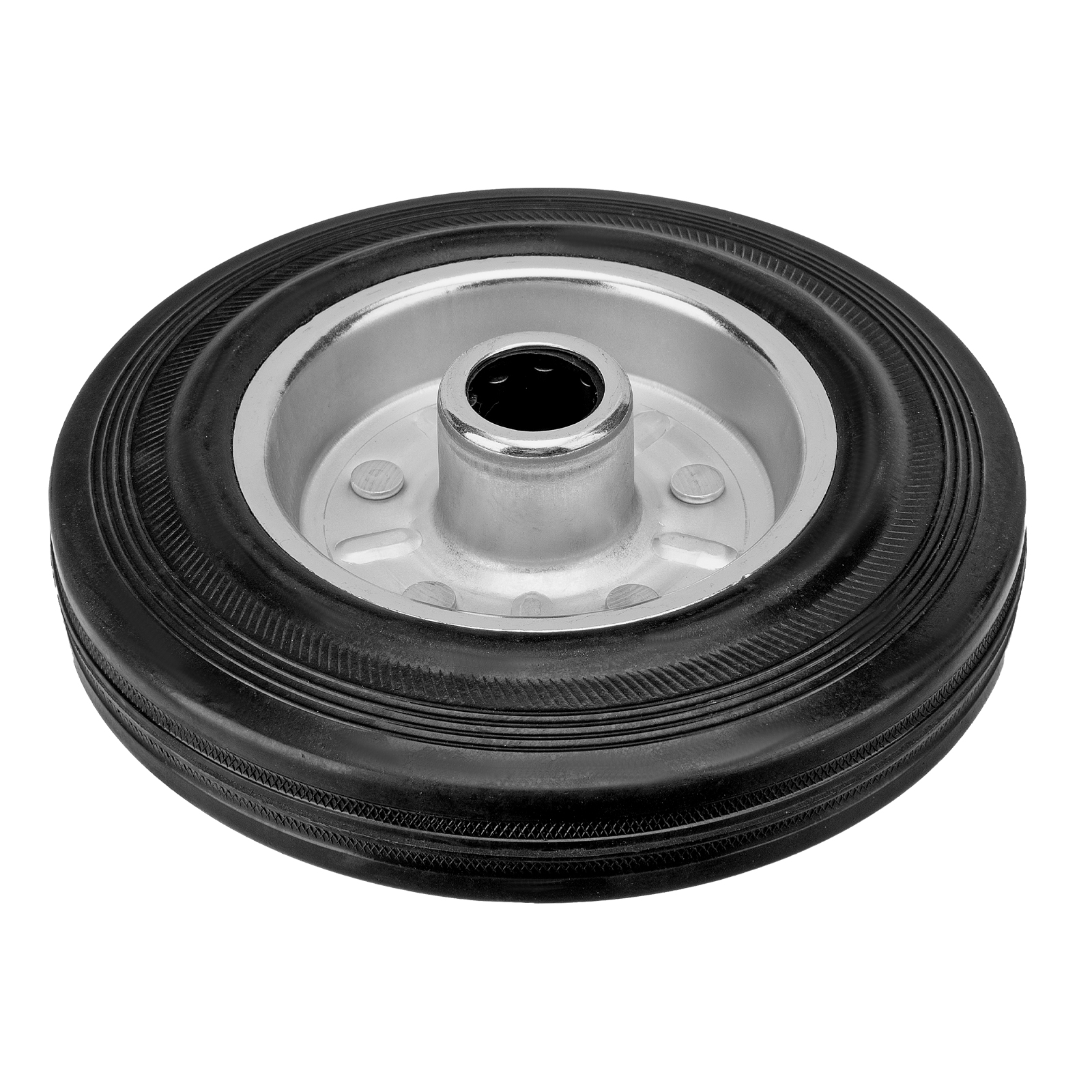 - Универсальность — контактная поверхность выполнена из прочной резины, поэтому колесо может применяться на различных покрытиях, долгое время сохраняя рабочие качества.