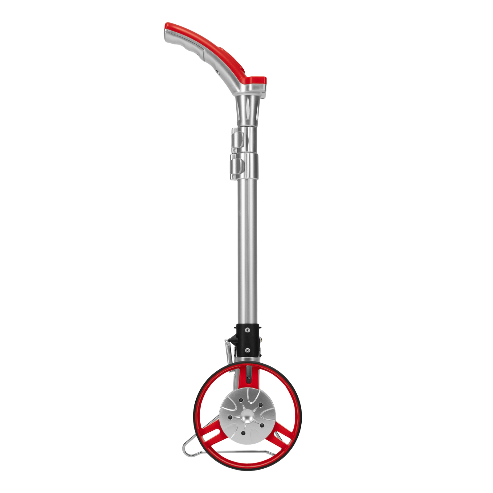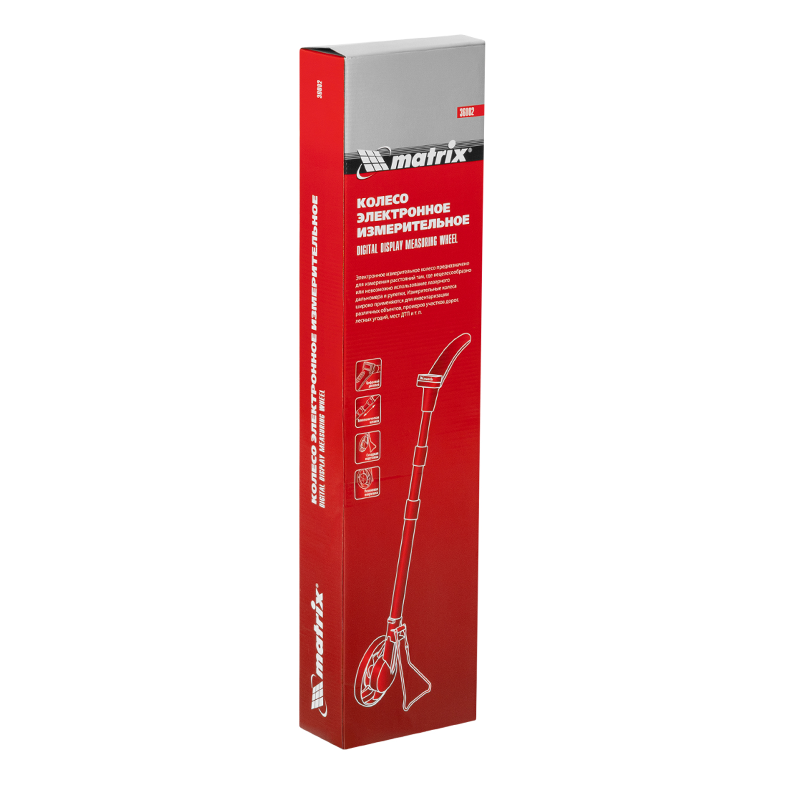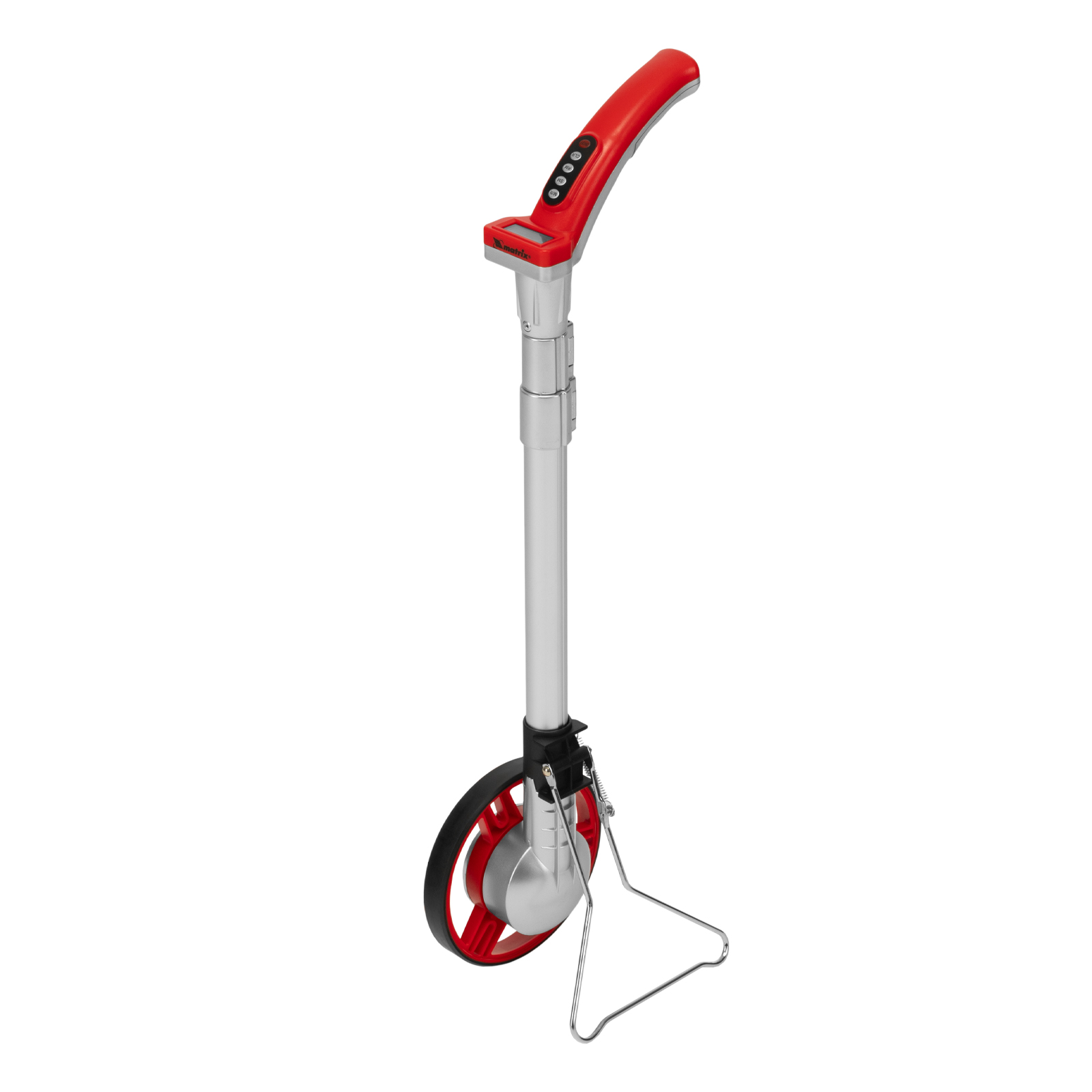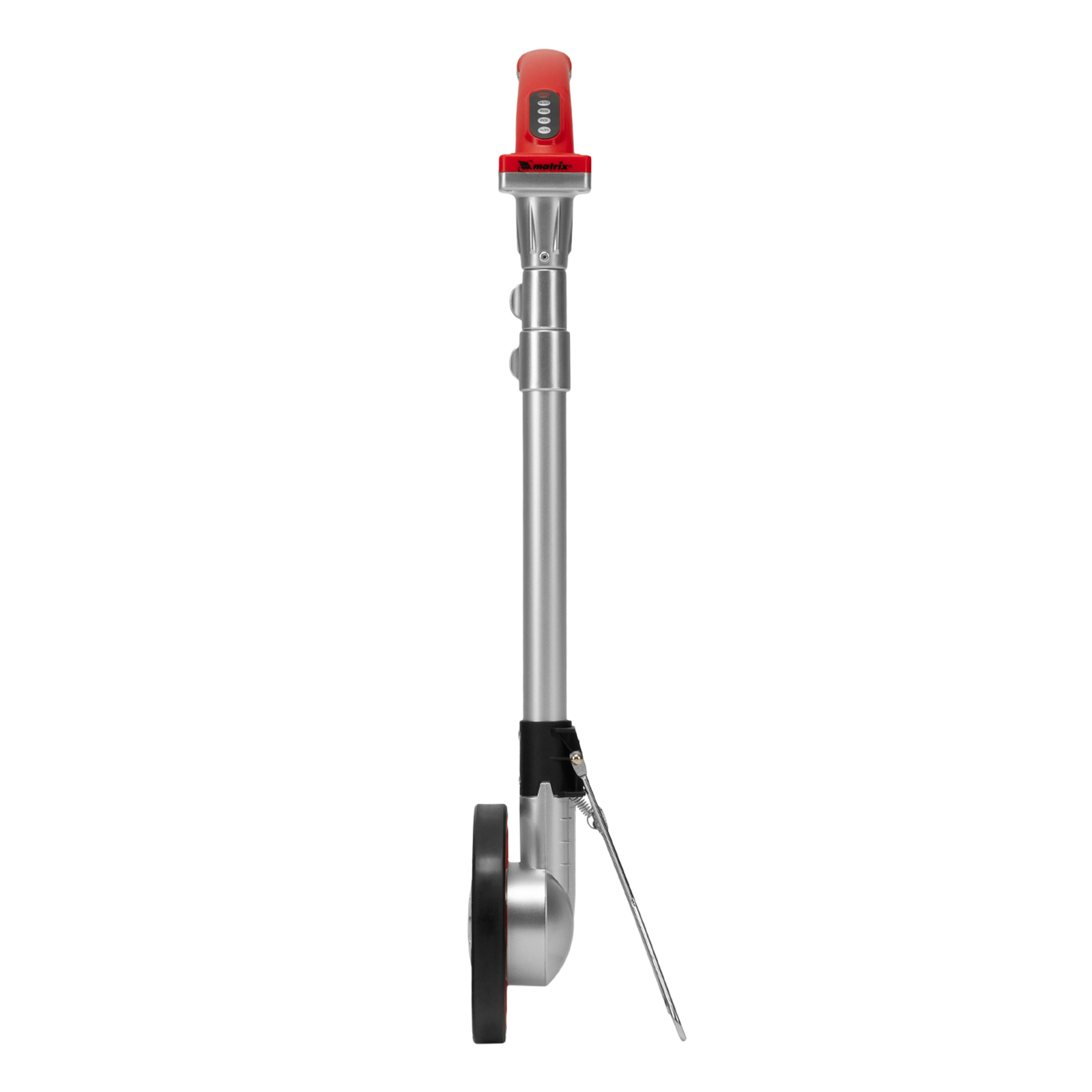 Колесо измерительное электронное Matrix 36002 используется для замера расстояний на местности и особенно удобно на участках со сложным рельефом, где невозможно использование рулетки или дальномера. Трехсекционная телескопическая ручка раздвигается с 560 до 1100 мм, что позволяет подобрать длину под любой рост оператора. Показания удобно считывать — они выводятся на ЖК-дисплей, установленный на рукоятке. Мерное колесо, или курвиметр, применяют при инвентаризации сельскохозяйственных земель, строительстве автомобильных и железнодорожных работ, для обмера строений или дачных участков.