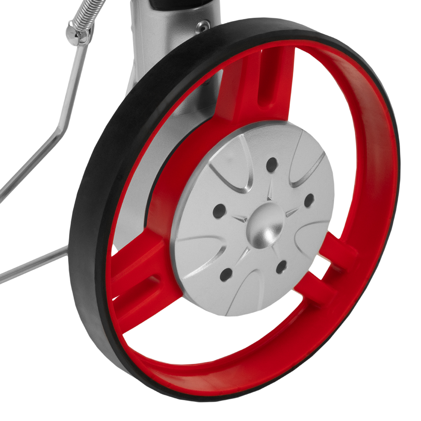 - Легкий ход и хорошее сцепление с поверхностью — колесо диаметром 16 см имеет обрезиненную поверхность.