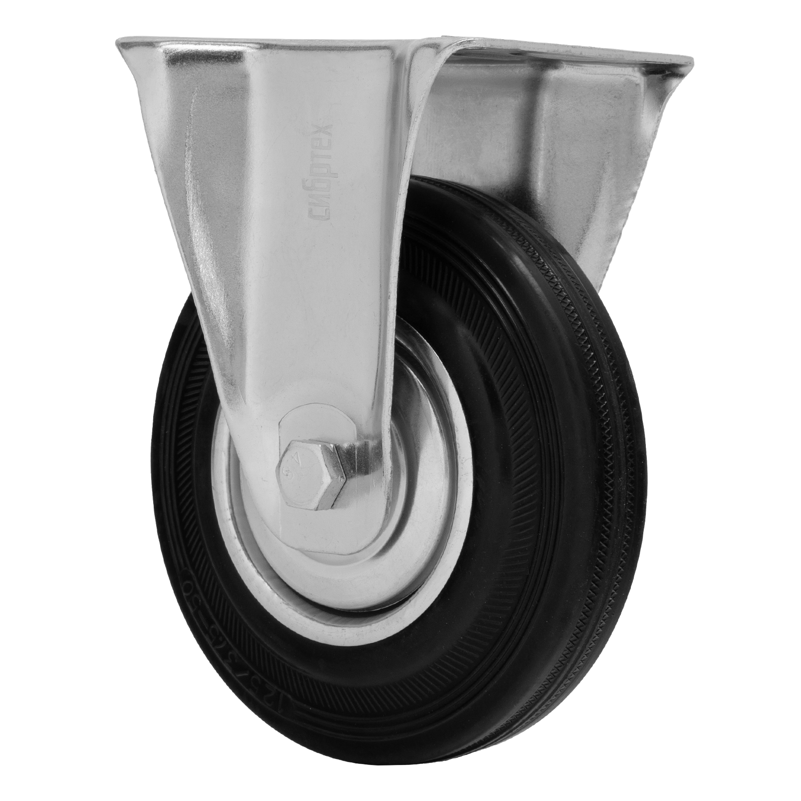Колесо неповоротное Сибртех 687105 диаметром 125 мм, с платформенным креплением, обладает грузоподъемностью 80 кг и устанавливается на ручные тележки. Благодаря шине из прочной резины не повреждает поверхность и не издает шума при движении. Колесо служит для перемещения грузов по прямолинейной траектории в производственных и складских помещениях, а также под открытым небом.