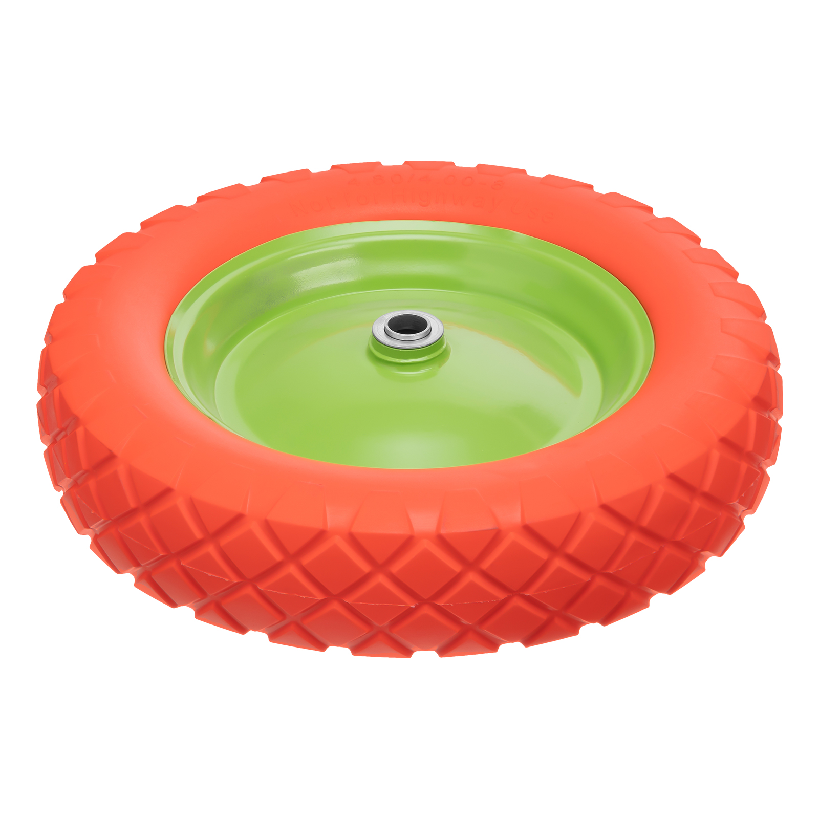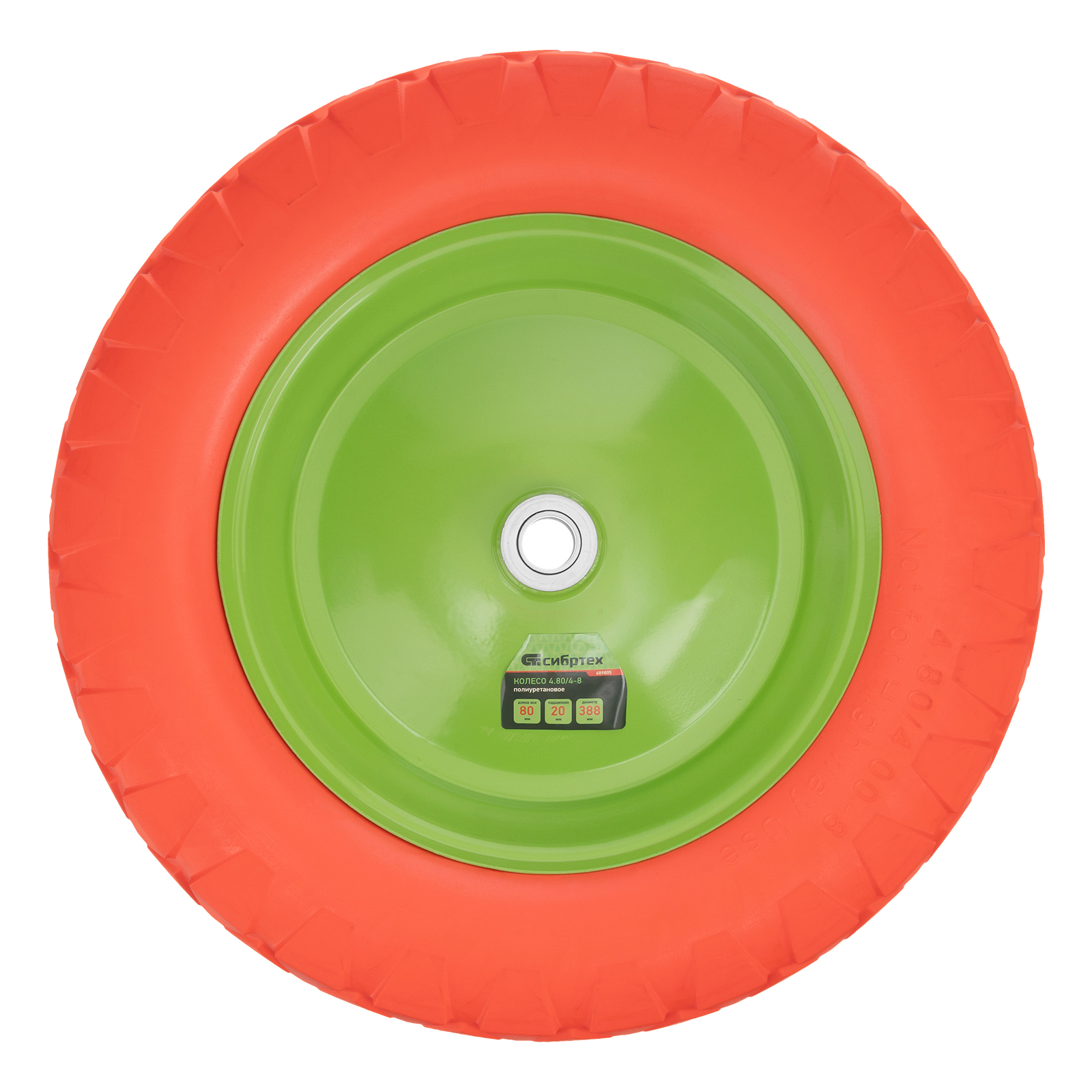 Полиуретановое колесо 4.80/4-8 Сибртех 689805 с длиной оси 80 мм и диаметром подшипника 20 мм — движущий элемент тачки Сибртех 68936. Непрокалываемое колесо подходит для использования в самых жестких условиях. В отличие от пневматических колес не требует подкачки, обслуживания и легко отмывается от грязи.