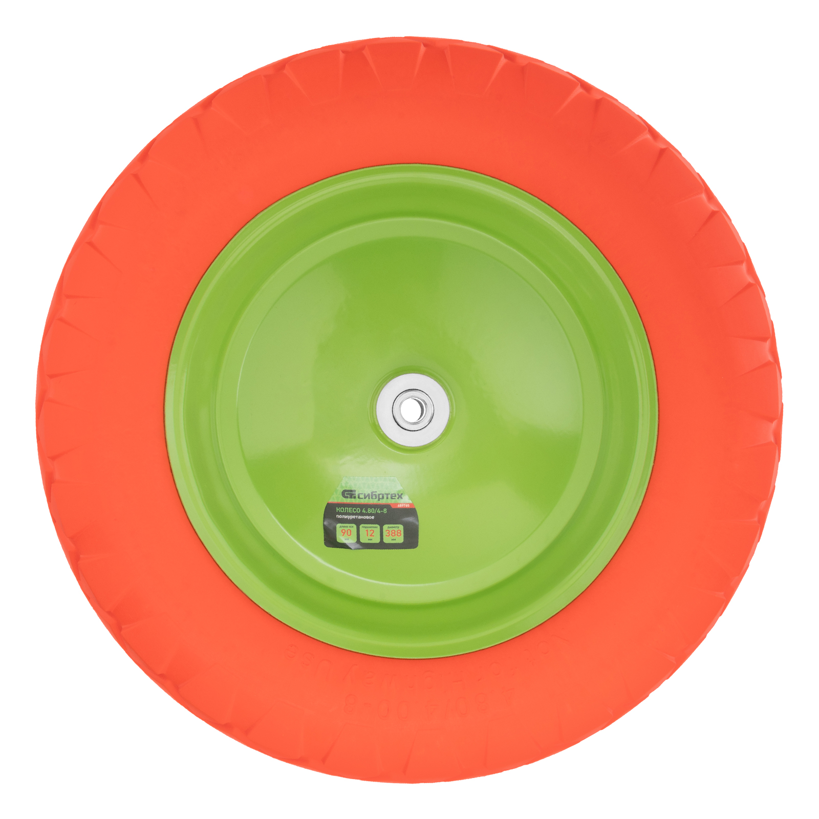 Полиуретановое колесо 4.80/4-8 Сибртех 689785 с длиной оси 90 мм и диаметром подшипника 12 мм — движущий элемент тачек Palisad 68918, 689183, 68935, Сибртех 68968, 689633 и др. Непрокалываемое колесо подходит для использования в самых жестких условиях. В отличие от пневматических колес не требует подкачки, обслуживания и легко отмывается от грязи.