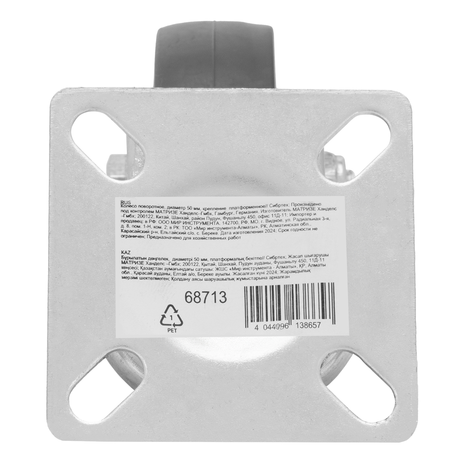 Колесо поворотное Сибртех 68713 диаметром 50 мм, с платформенным креплением, имеет грузоподъемность 35 кг и устанавливается на ручные промышленные тележки. Выдерживает температуру от -25 до +50 °C, устойчиво к воздействию ультрафиолета и влаги, поэтому подходит для эксплуатации как внутри помещения, так и снаружи. Поворотный механизм облегчает маневрирование. Колесо используется для перемещения грузов на производстве или на складах.