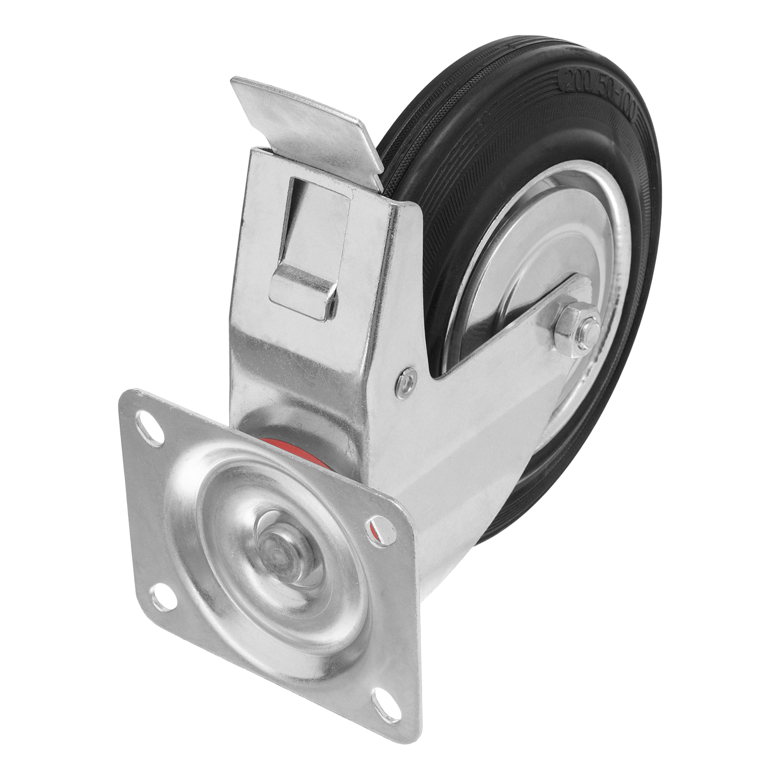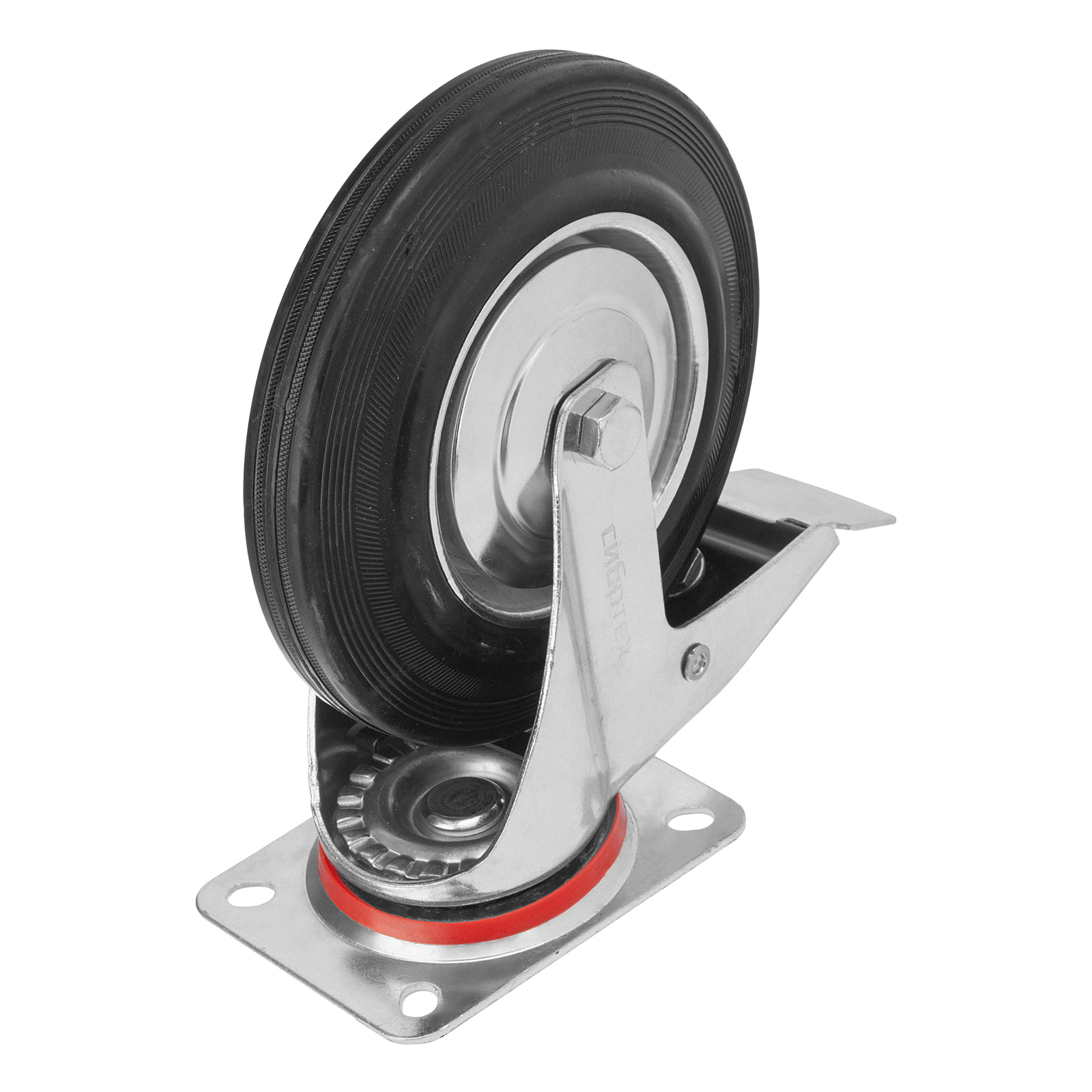 Колесо поворотное Сибртех 68724 диаметром 200 мм, грузоподъемностью 165 кг, с платформенным креплением и тормозом, — движущая часть ручных тележек стандартной и увеличенной грузоподъемности. Поворотный механизм позволяет тележке маневрировать. Устойчивость к высоким и низким температурам, влаге и ультрафиолету позволяет использовать колесо как на улице, так и в складских или производственных помещениях.