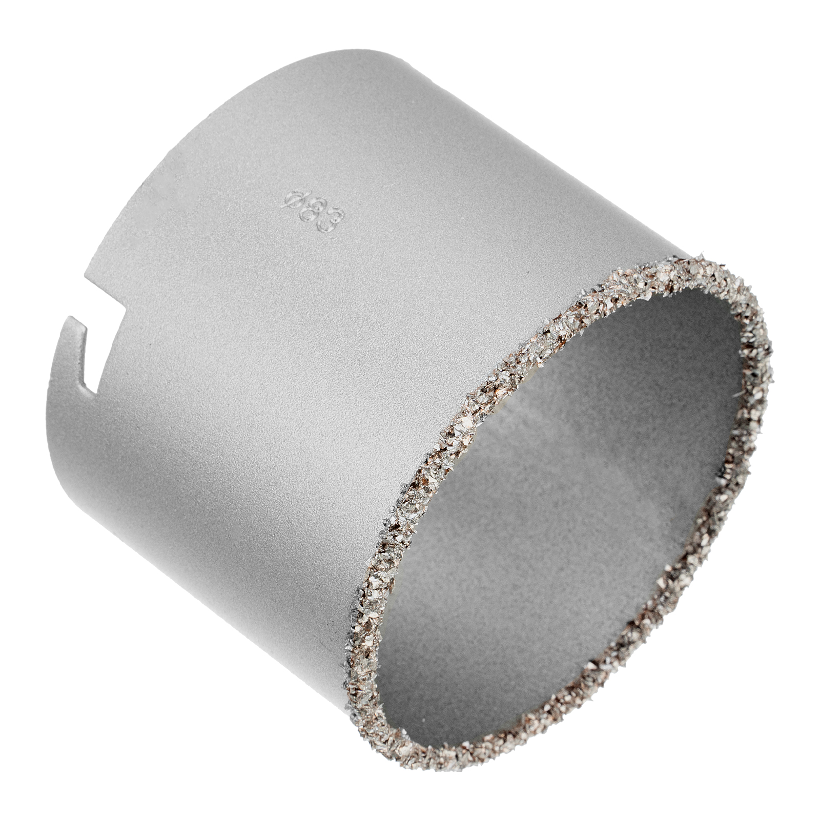 Кольцевая коронка с карбидным напылением Matrix 72856 диаметром 83 мм — сменный режущий элемент для дрелей и перфораторов. Предназначена для сверления отверстий в керамической плитке, ячеистом бетоне, пенобетоне, газосиликате, кирпиче. Пригодится для монтажа проводки в доме. Используется совместно с державкой Matrix 72860 и центрирующим сверлом Matrix 72862 (не входят в комплект поставки).