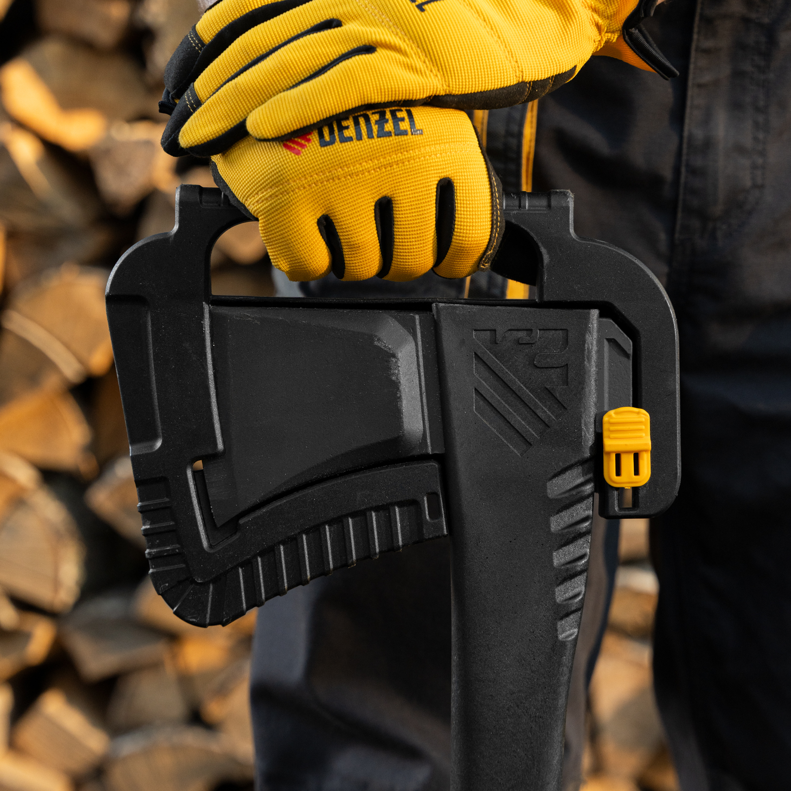 - Безопасное хранение и транспортировка — колун поставляется с защитным кожухом для лезвия.