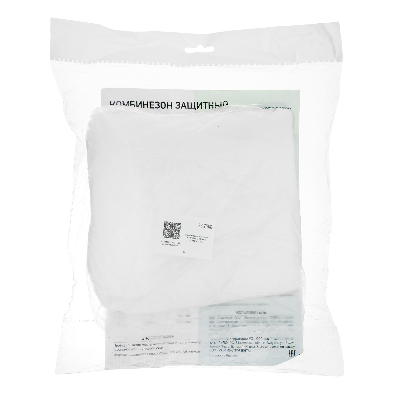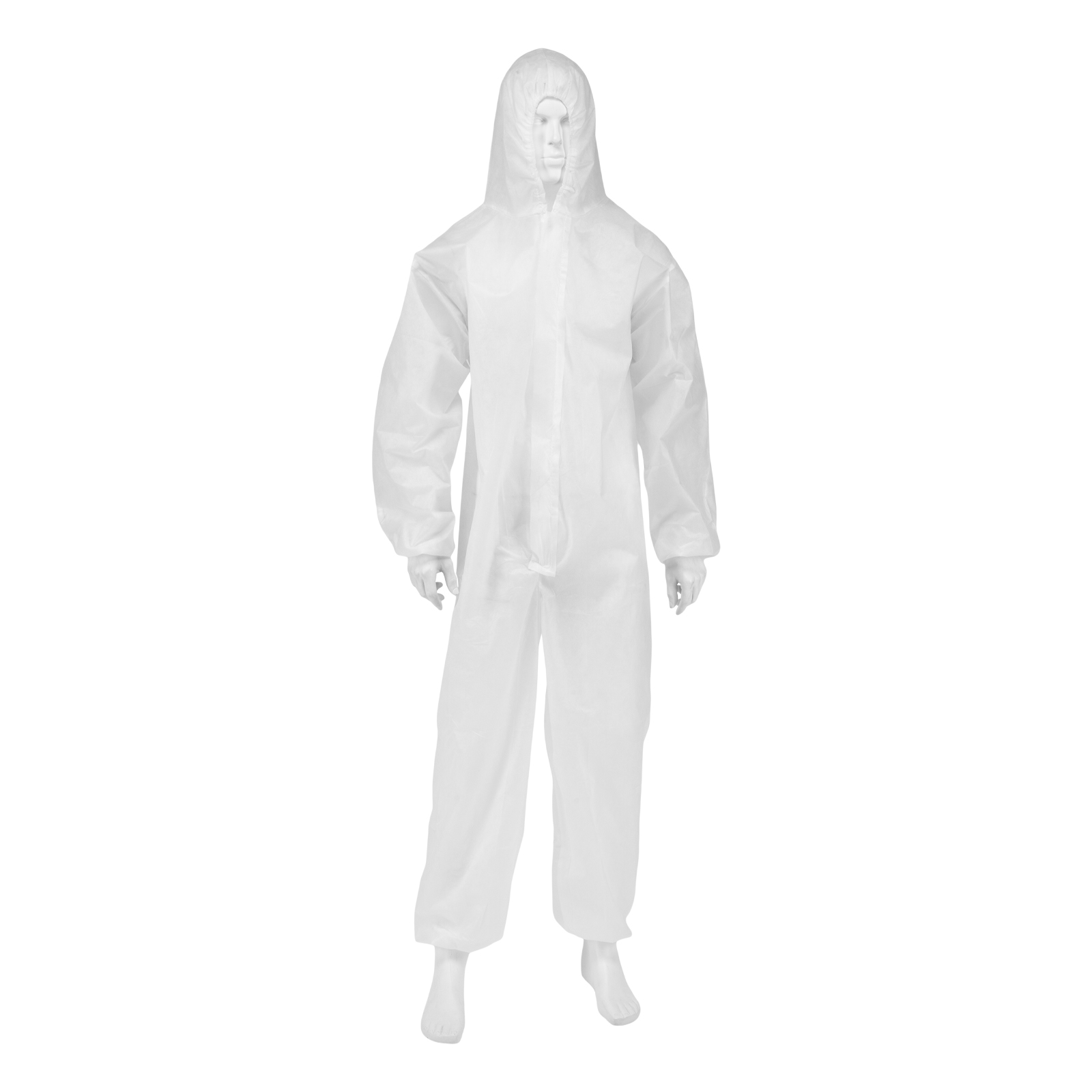 - Комфортная эксплуатация — нетканый материал спанбонд не стесняет движений и дает коже дышать, застежка-молния позволяет быстро надевать и снимать комбинезон.