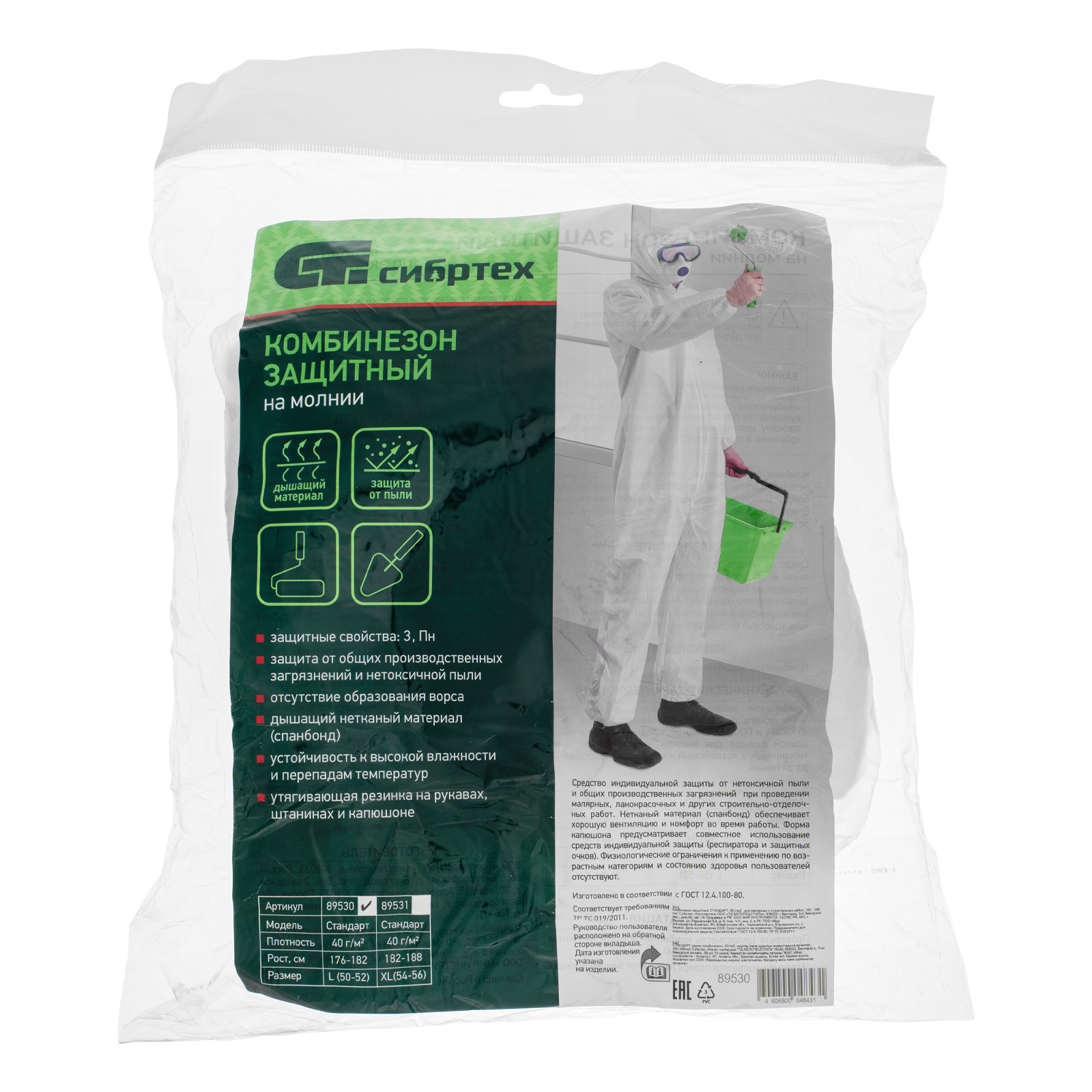 Защитный комбинезон Сибртех «Стандарт» 89530 плотностью 40 г/м2 рассчитан на рост 172-180 см и используется во время выполнения малярных и строительных работ. Предохраняет одежду и волосы мастера от пыли и частиц строительных растворов. Плотно прилегающий капюшон обеспечивает защиту головы, эластичные манжеты препятствуют загрязнению рукавов и обуви.