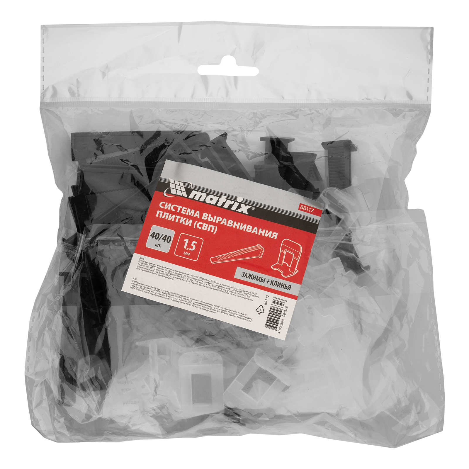Система выравнивания плитки (СВП Ворота) Matrix 88117 включает все необходимое: зажимы и клинья (40/40 шт. в пакете) для керамической и керамогранитной плитки толщиной 6-12 мм. Изделия предотвращают смещение плитки и гарантируют получение идеально ровных, аккуратных швов. СВП предназначена для формирования швов 1,5-1,7 мм.