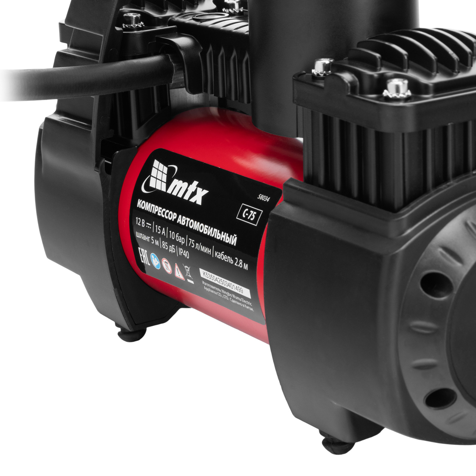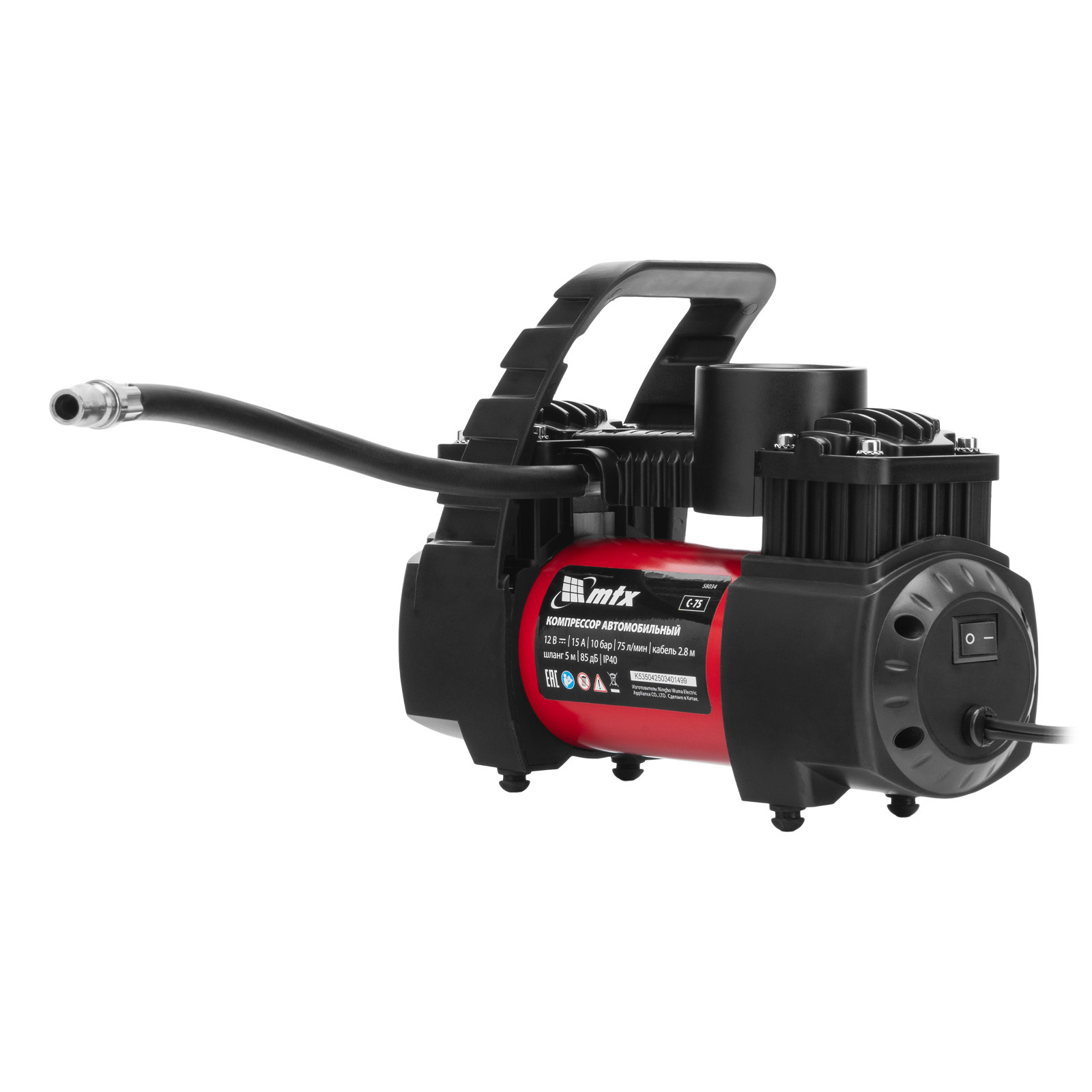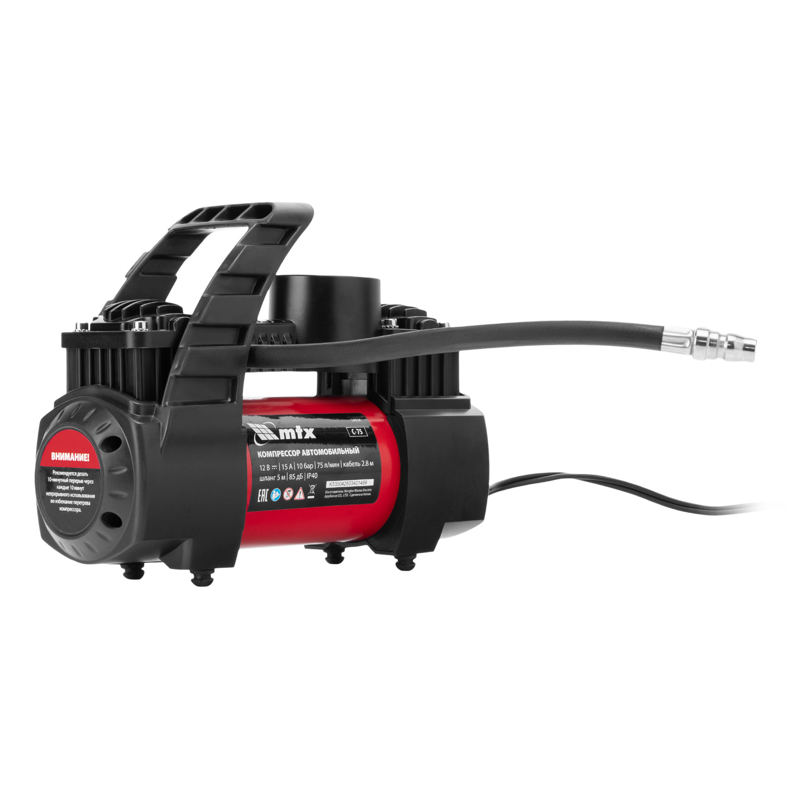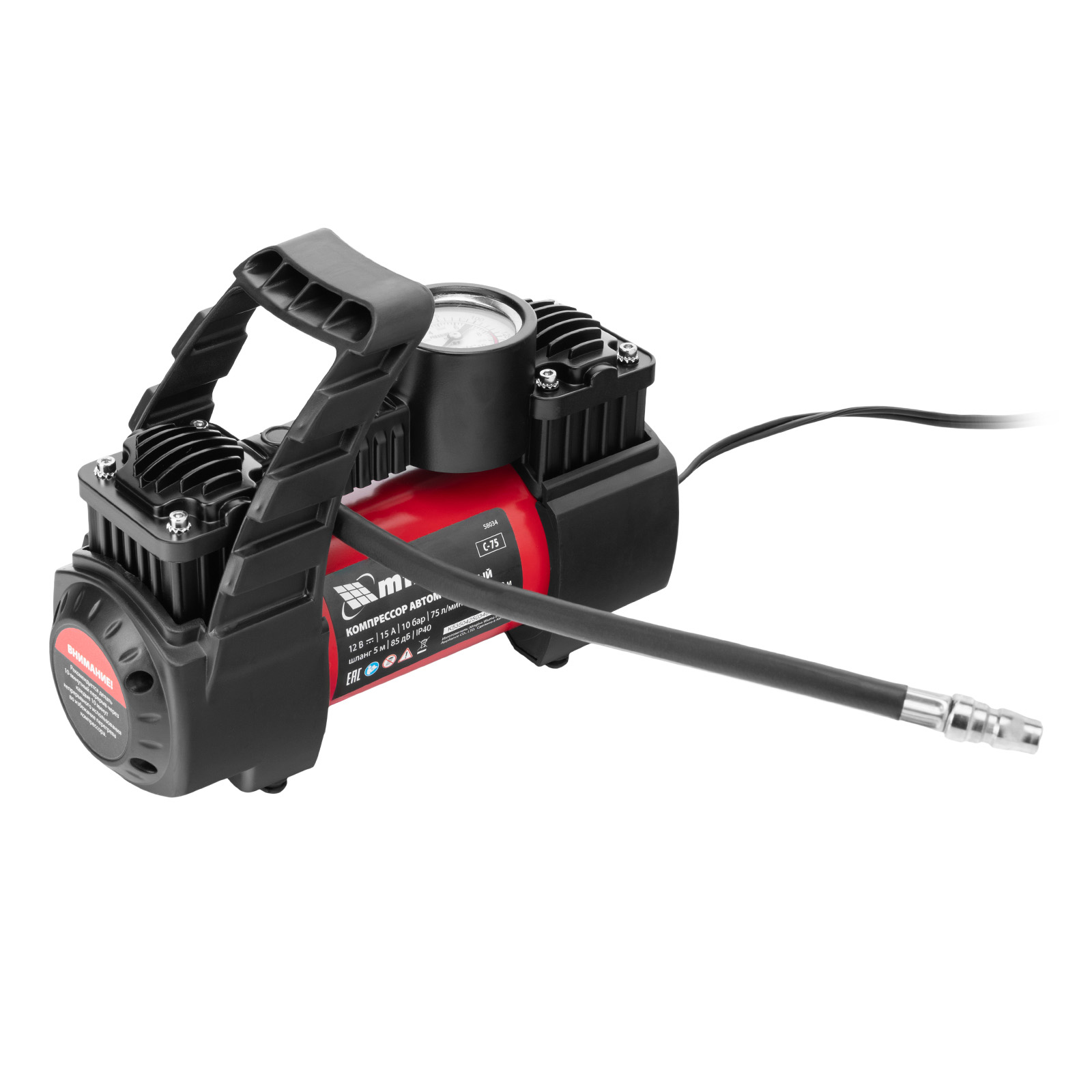 Автомобильный компрессор MTX C-75 58034 производительностью 75 л/мин работает от сети 12 В и подает сжатый воздух под давлением 10 атм. С его помощью можно быстро накачать шины автомобиля или велосипеда, а также подкачать мяч, надувной матрац, лодку и т.д. В комплект поставки включен набор из 3 насадок для эффективного решения различных задач. Компрессор подключается к автомобильному аккумулятору, незаменим в поездке и на отдыхе.