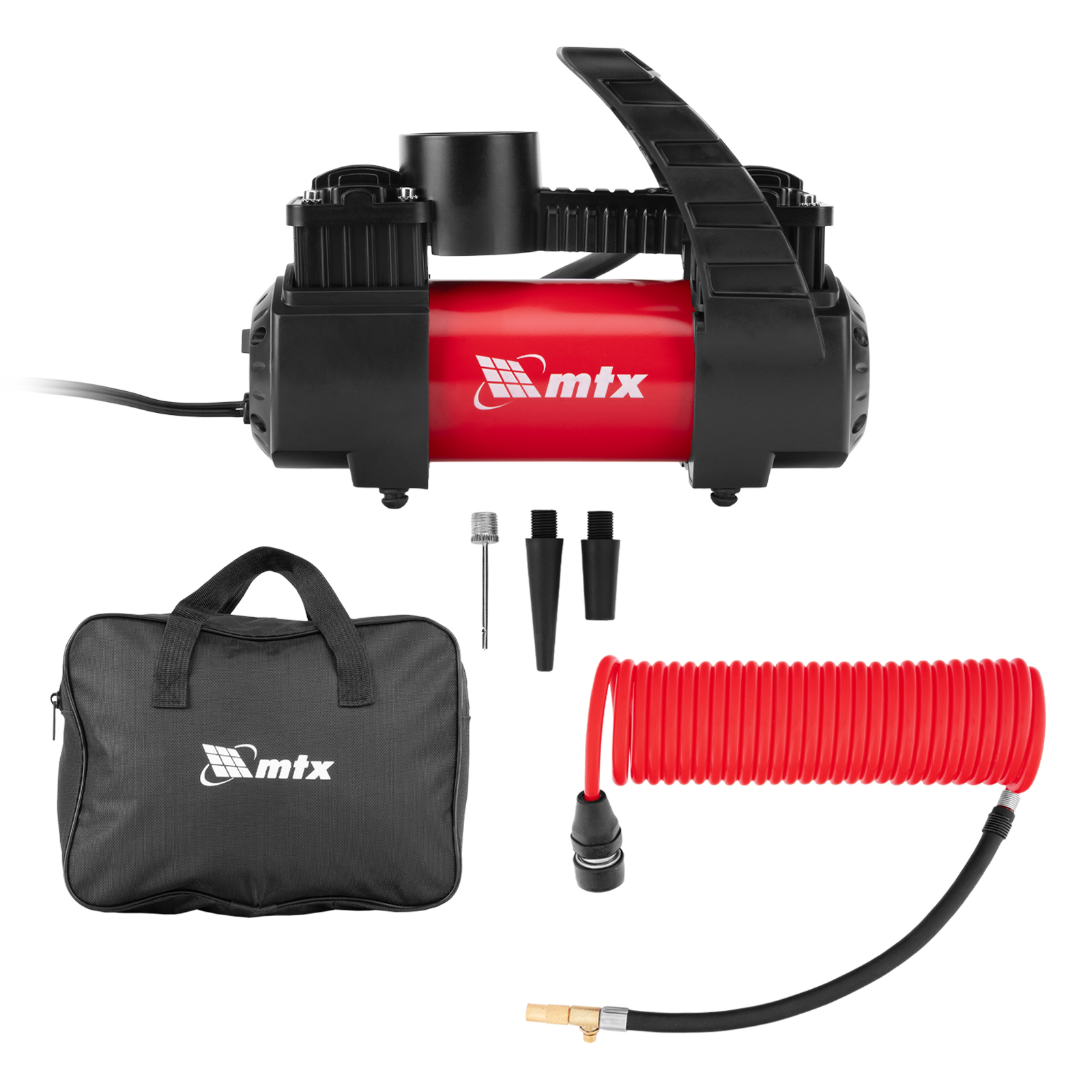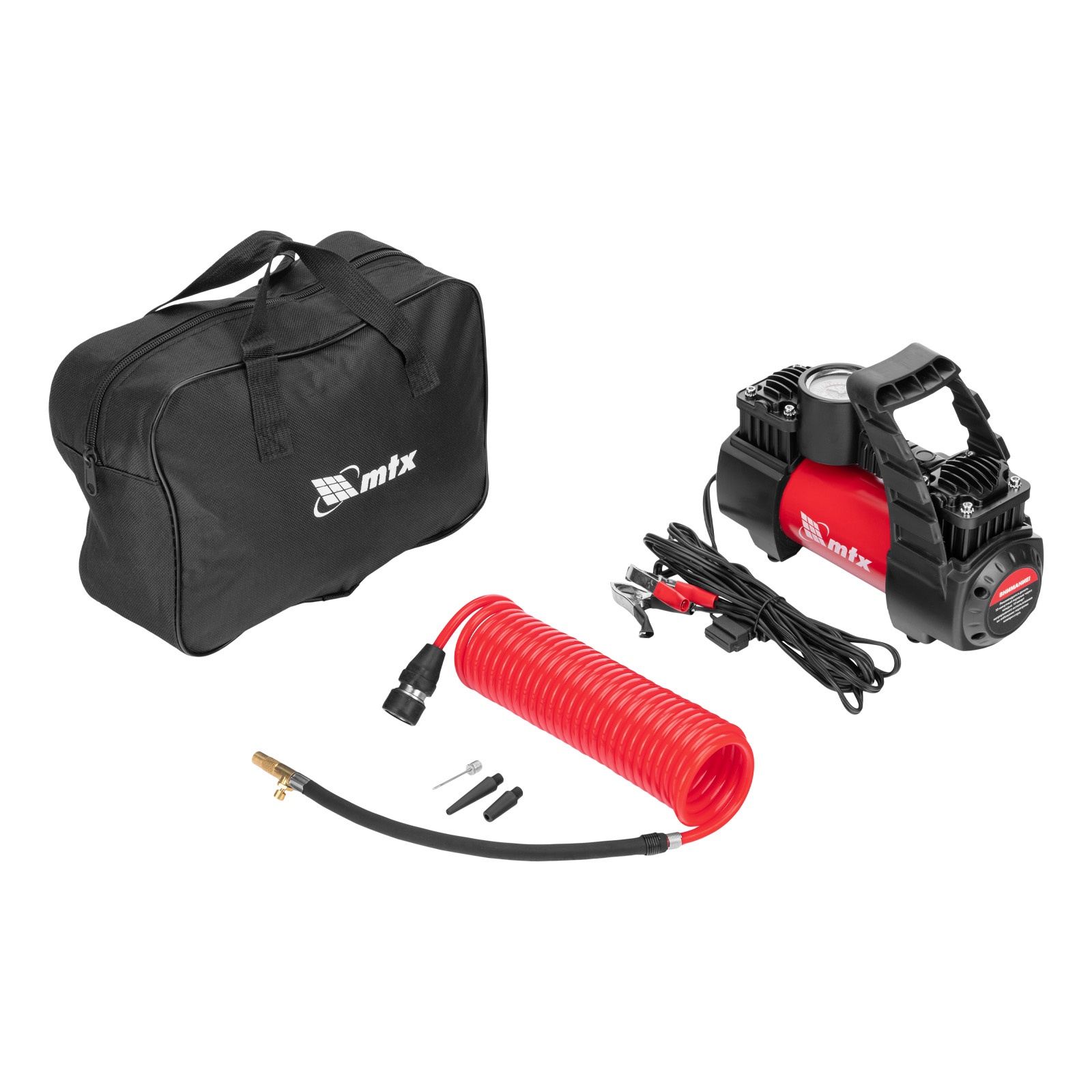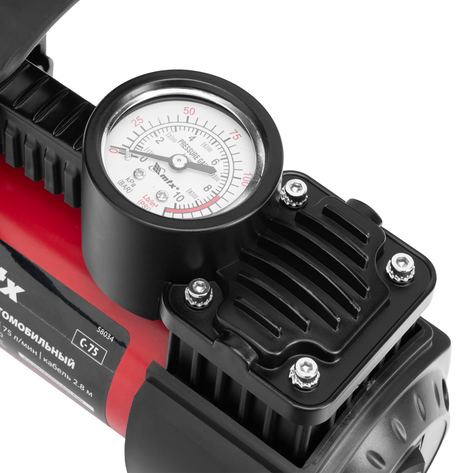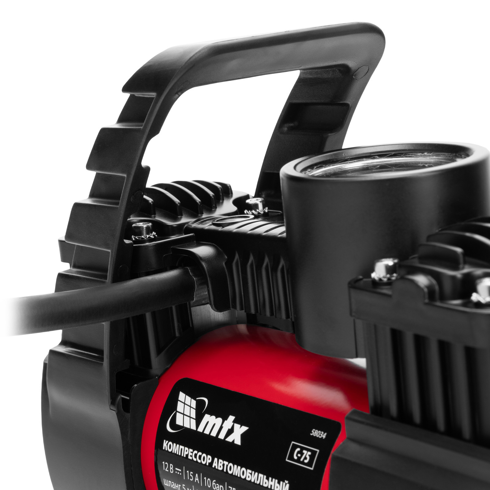 Автомобильный компрессор MTX C-75 58034 производительностью 75 л/мин работает от сети 12 В и подает сжатый воздух под давлением 10 атм. С его помощью можно быстро накачать шины автомобиля или велосипеда, а также подкачать мяч, надувной матрац, лодку и т.д. В комплект поставки включен набор из 3 насадок для эффективного решения различных задач. Компрессор подключается к автомобильному аккумулятору, незаменим в поездке и на отдыхе.