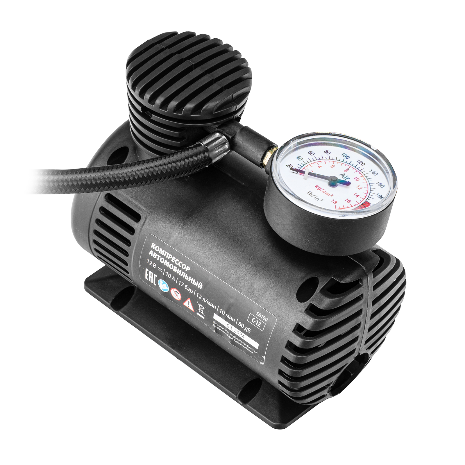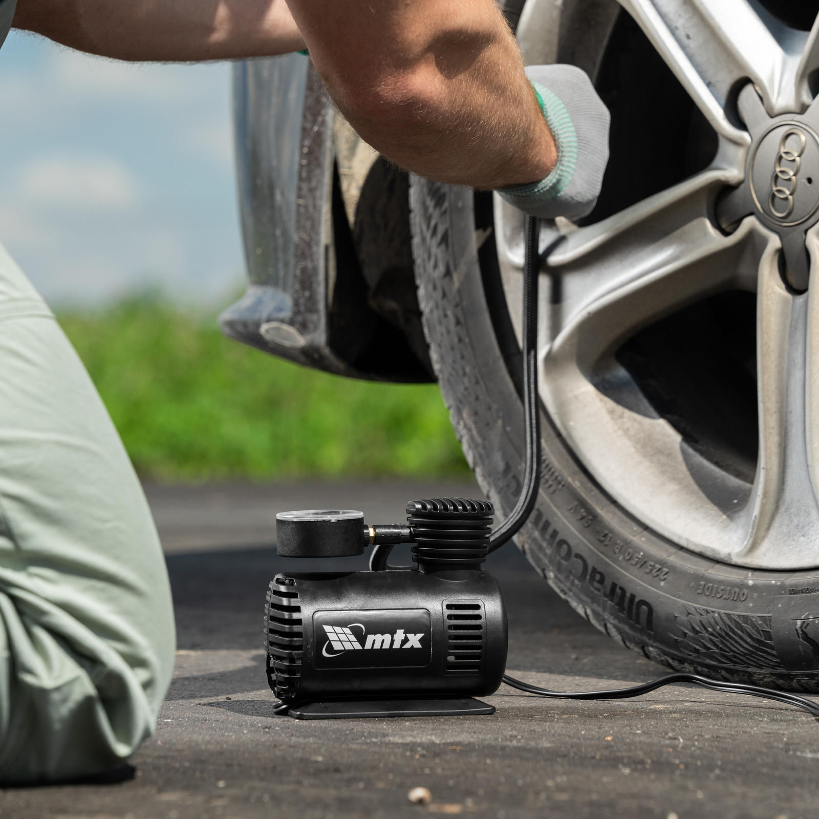 Автомобильный компрессор MTX C-12 58100 производительностью 12 л/мин обеспечивает давление до 17 атмосфер и питается от прикуривателя 12 В. Используется для накачки шин, а также мячей, матрасов, лодок и другого инвентаря. Компрессор поршневого типа способен накачать колесо R16 за 10 минут. Устройство пригодится в поездке, на даче, во время отдыха на природе.