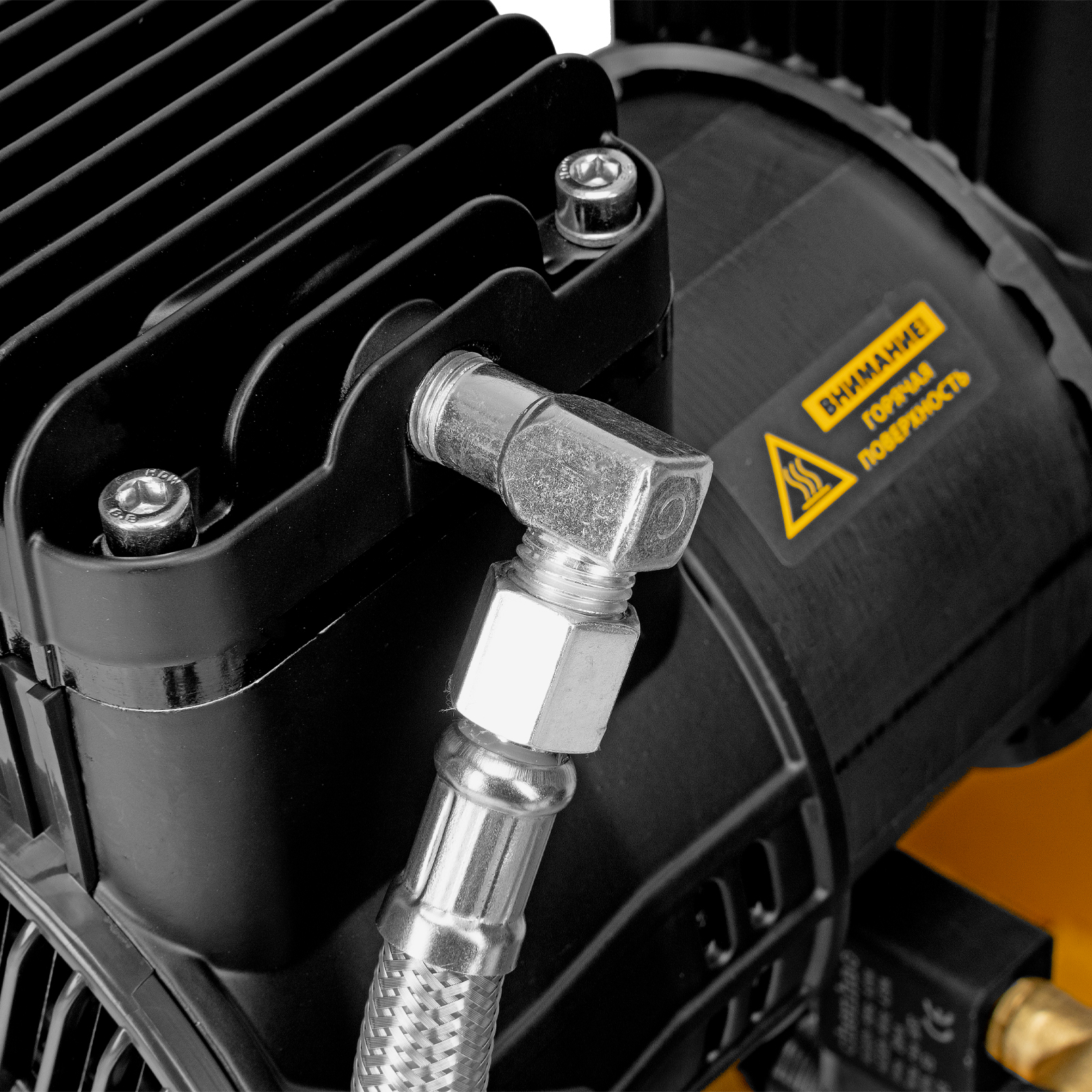 - Контроль работы — компрессор оснащен 2 манометрами для отслеживания давления в ресивере и пневмолинии