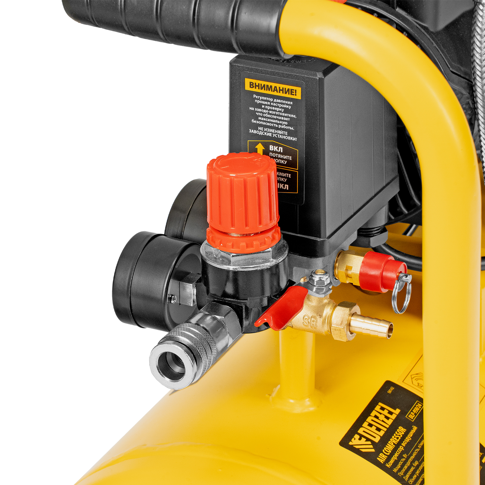 - Безопасность — в случае превышения максимального давления в ресивере срабатывает предохранительный клапан, что позволяет избежать аварийных ситуаций.