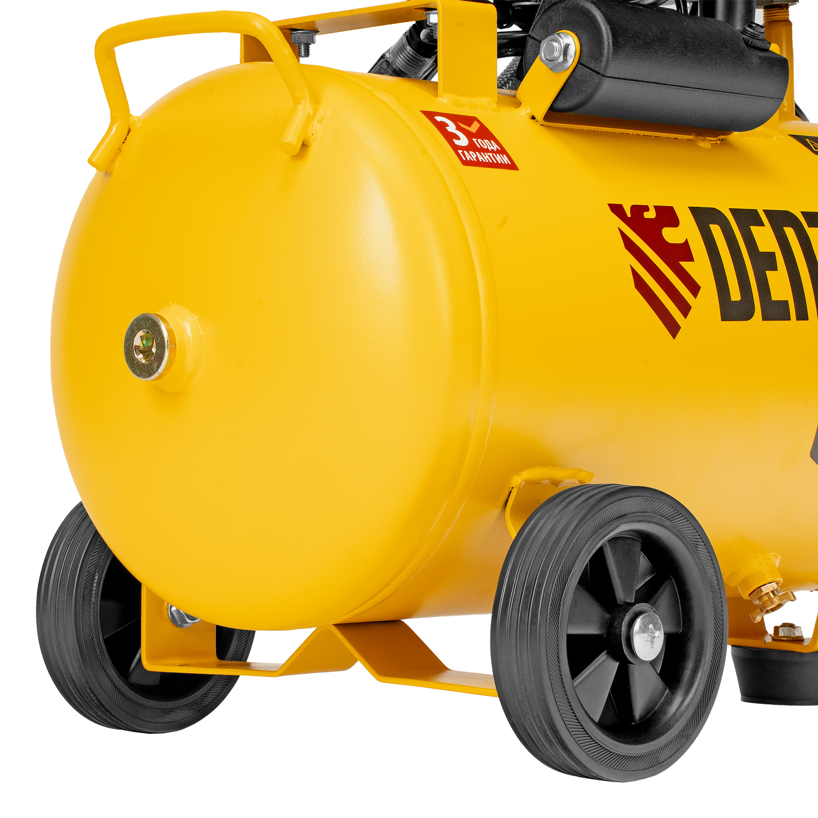 - Мобильность — 2 колеса и транспортировочная рукоятка упрощают перемещение компрессора по рабочей зоне.