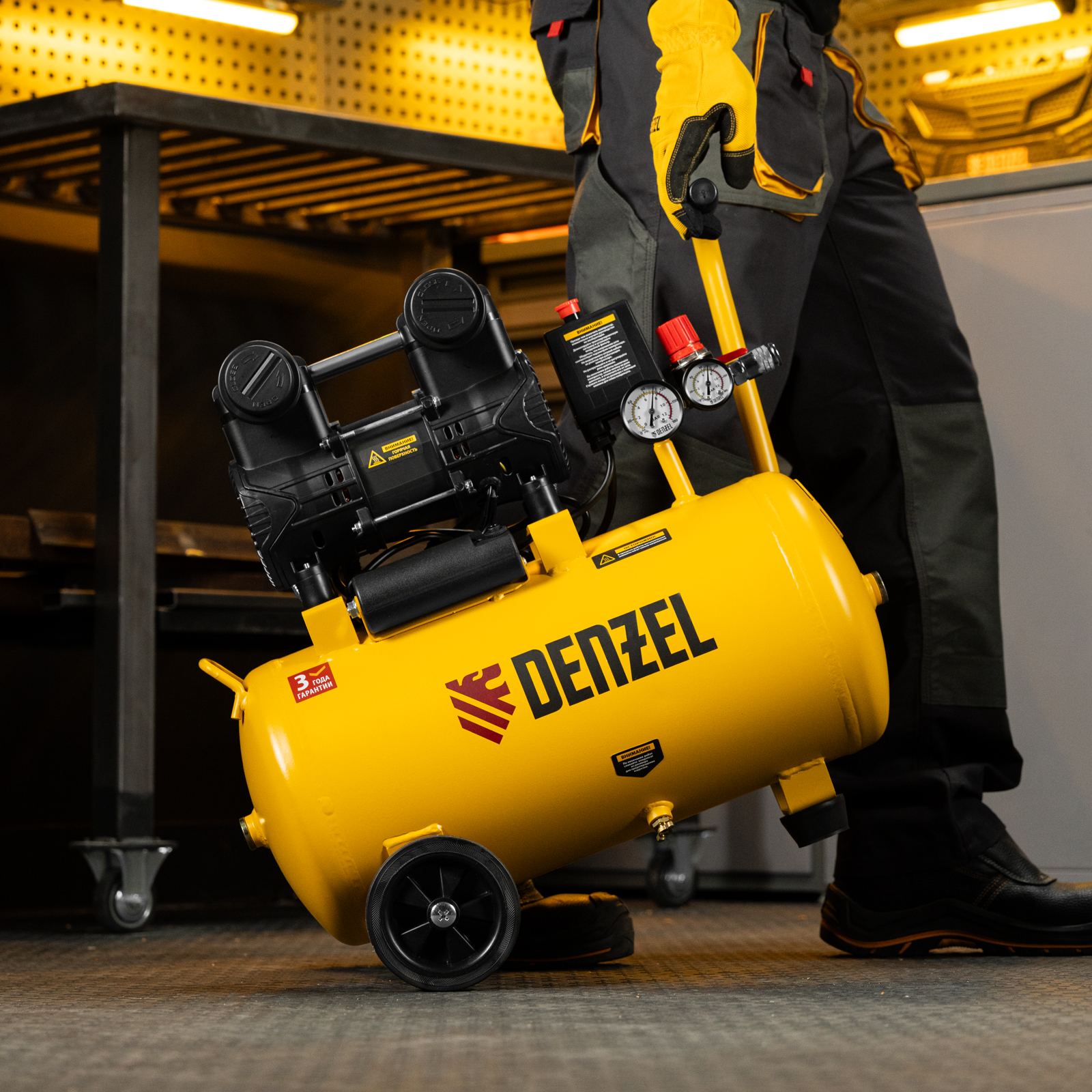 Безмасляный малошумный компрессор Denzel DLP-950/24 58142 мощностью 950 Вт и производительностью 170 л/мин, с ресивером объемом 24 л, оснащен двигателем со скоростью вращения 2850 об/мин. Предназначен для обеспечения пневмоинструмента сжатым воздухом. Для работы компрессора не требуется масло, поэтому он подходит для проведения покрасочных работ и продувки электронных компонентов. Прямой привод обеспечивает максимально эффективную работу и высокую производительность. Благодаря низкому уровню шума эксплуатация компрессора не вызывает ощущение дискомфорта.